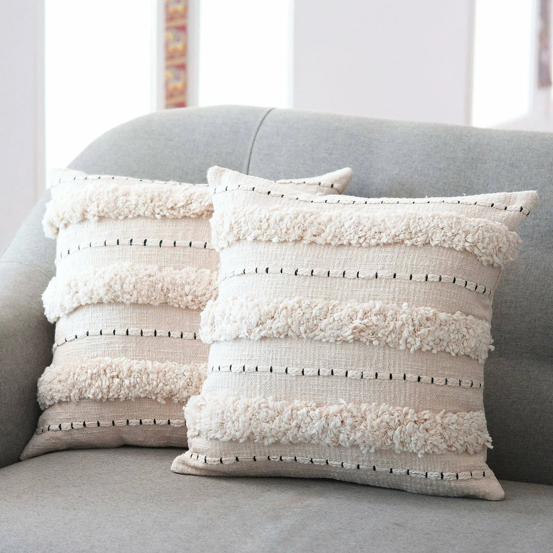 Designed upon a cotton slub base, Seema’s chic pair of cushion covers are just what you need to tie your room together. Indian artisans craft the pair from 100% cotton, embellishing the fabric with tufted cotton embroidery and leaving the backs plain. Polyester linings and zipper closures let you insert and withdraw cushions with ease.