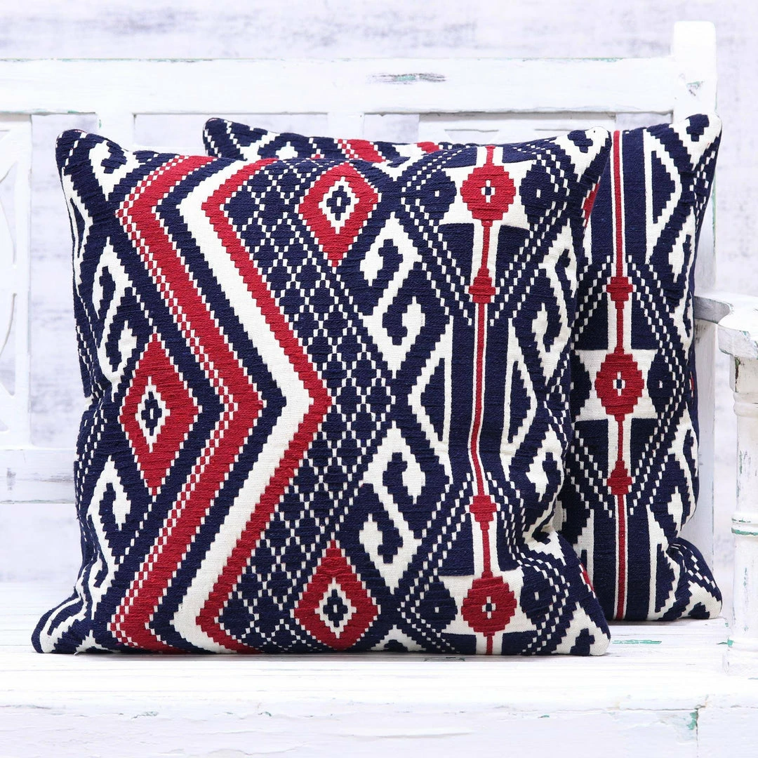 This cotton-blend pillow is designed in a beautiful geometric pattern and woven in perfect precision on a jacquard loom. This expert blend of red, black and white and the intricate pattern give the Ornate Crimson cushion covers a unique look that is sure to liven up your upholstery. Each cushion cover features a zipper opening.