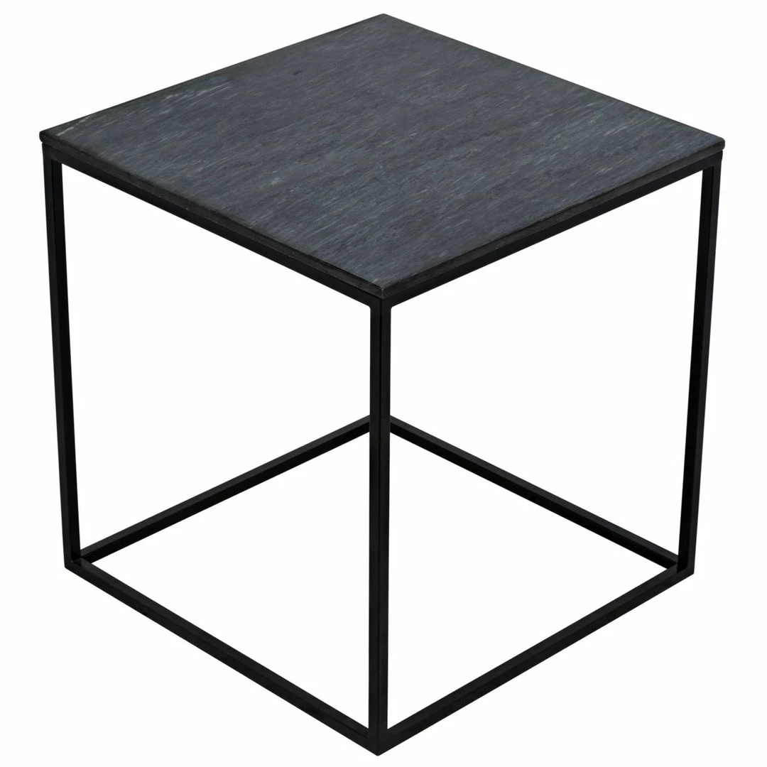 Elemental in its purity, the Landon table pairs a sleek metal base and with a square slab of natural black marble in a contemporary design that requires no further embellishment.