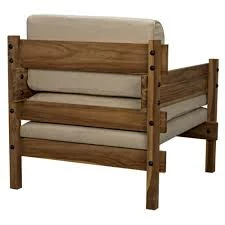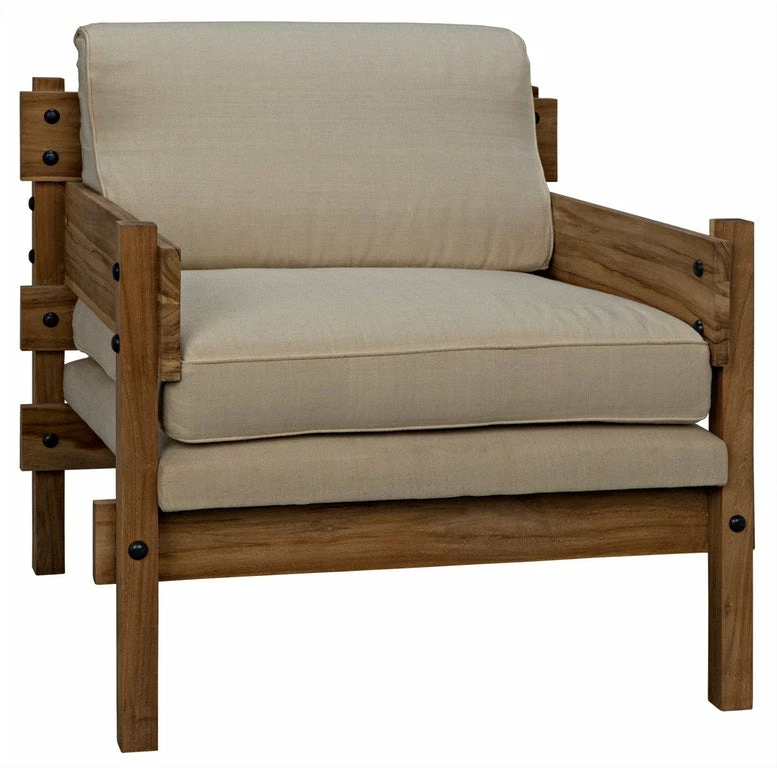 Comfy, casual, and beautifully made, this teak chair has off-white canvas cushions for softness and exposed metal accents for a bit of edge.
