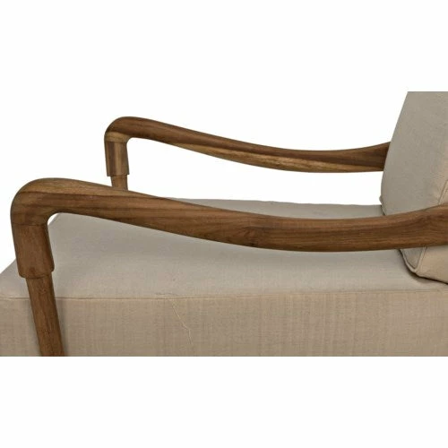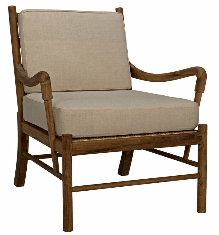 A traditional ladder back is given a slightly less formal vibe with a peeled rattan seat, and then topped with thick white cushions. Expert construction ensures it will be around for years, and a timeless design means it will look great the whole time.