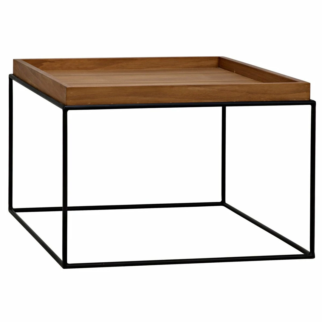 Delicate metal bands form the base of this minimalistic side table. A teak tray-style top, finished in a softly burnished gold, completes the look.