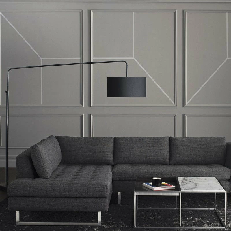With all its components the same exact color, even the electrical cord, there’s a profound, almost zen, simplicity to the Raku floor lamp. Its beauty comes from its textures and materials: a light-weight fabric shade; an impressively weighty marble base; and powder-coated steel arm and shaft. In-line on/off switch guarantees an absence of visual clutter.