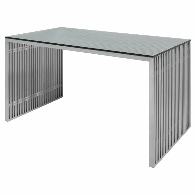 The Amici console table is a striking example of dynamic, articulated minimalism. The brushed stainless steel frame conveys a linear aesthetic, uniquely modern and textured. The Amici is ideal for a wide range of spaces contemporary, urban or eclectic, either commercial or private.