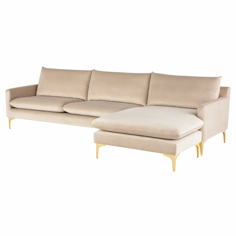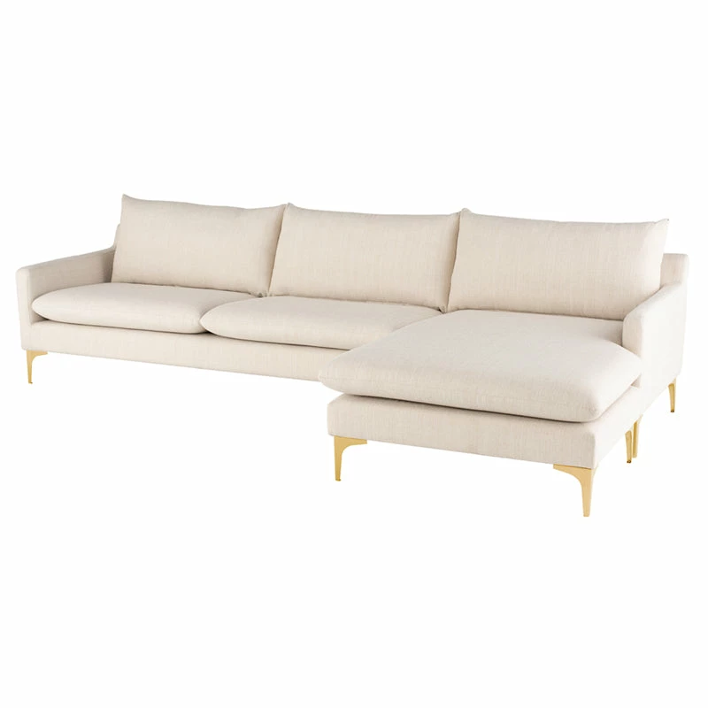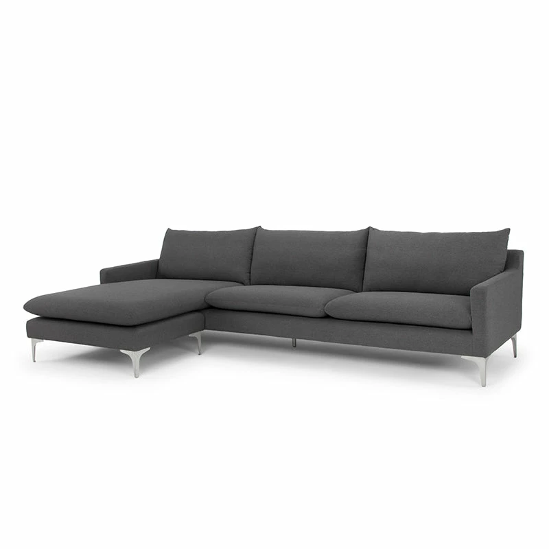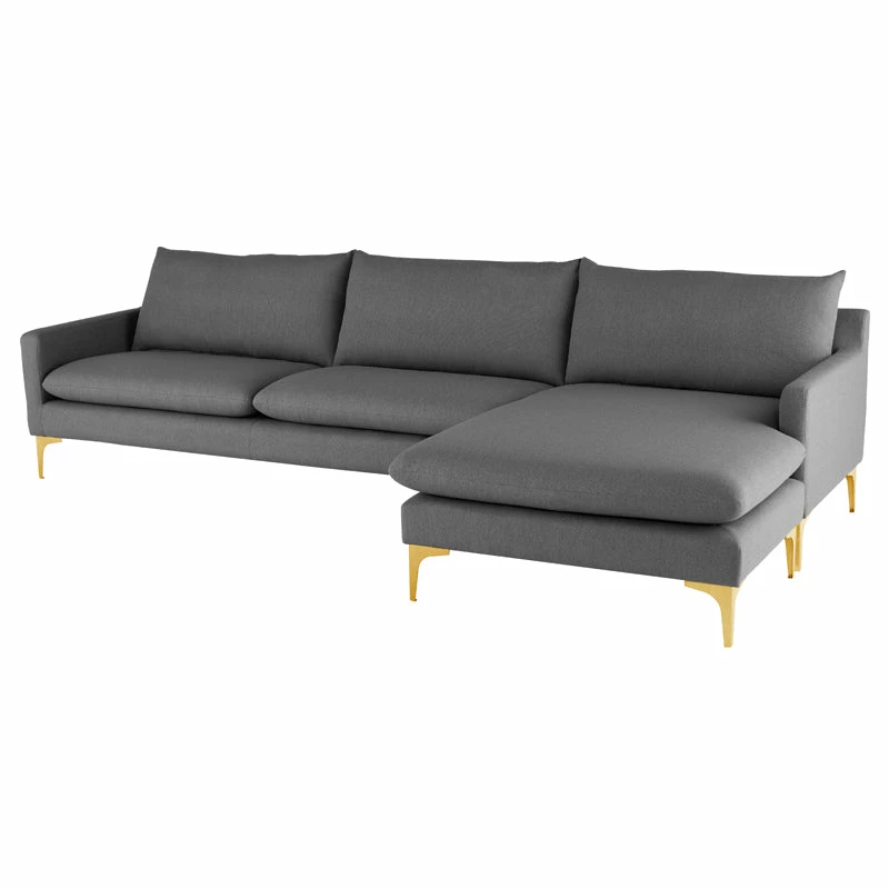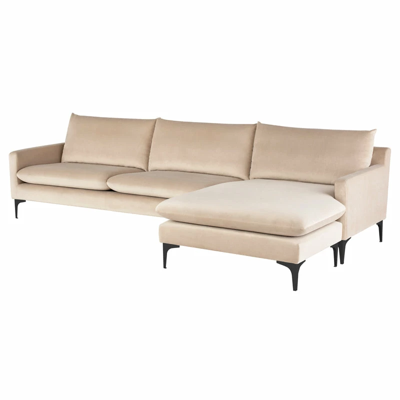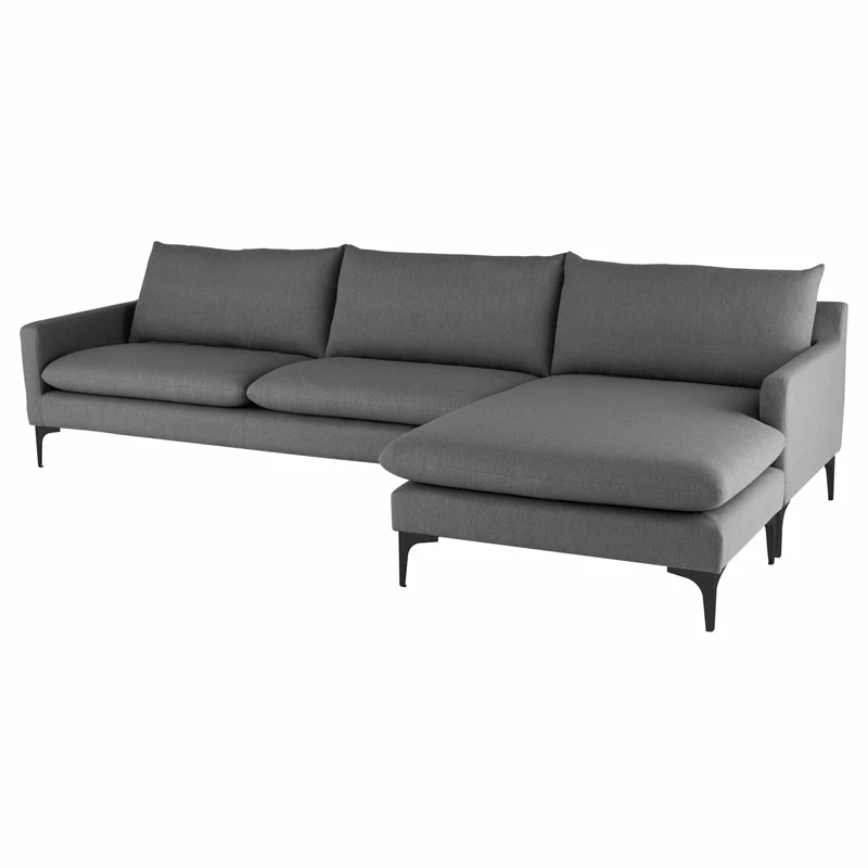The Anders sectional sofa strikes an inviting profile, its clean lines are softened by plush cushions.