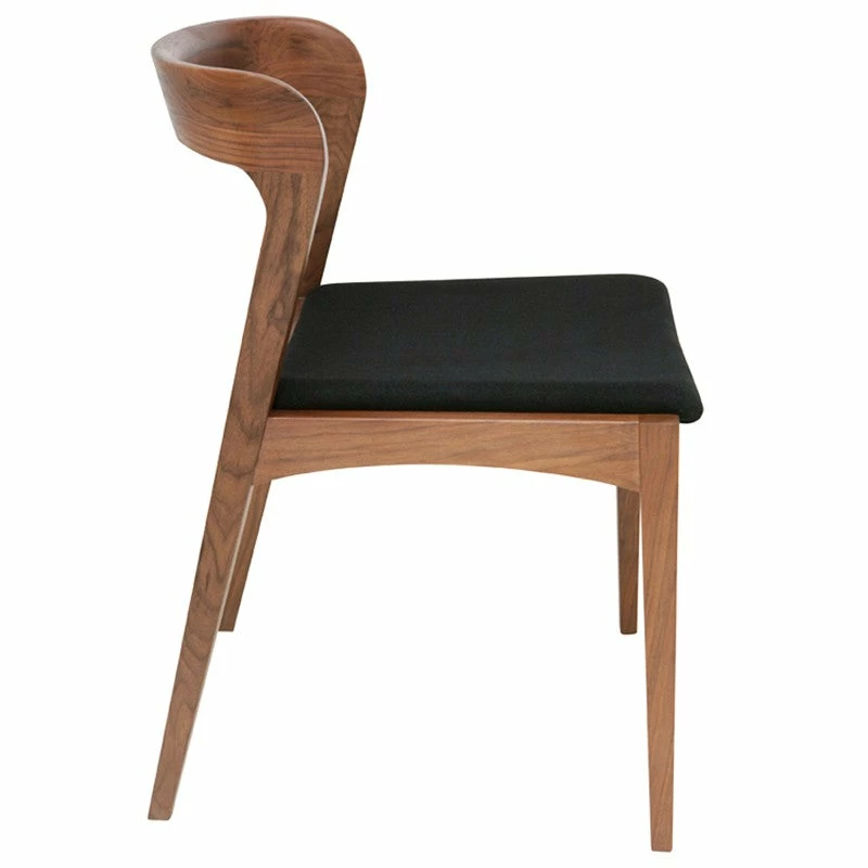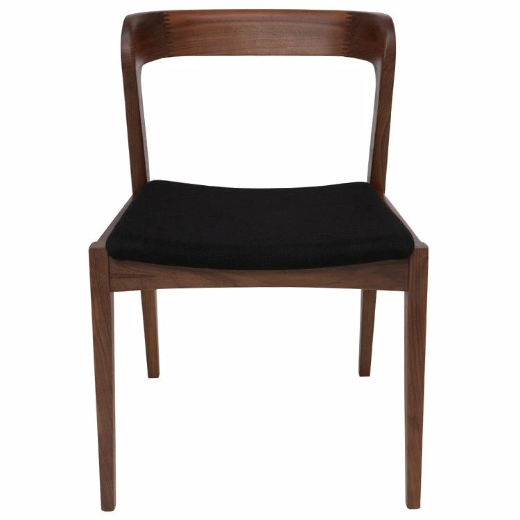 The Bjorn dining chair takes its name and aesthetic from the birthplace of midcentury design, Scandinavia. Gentle lines, supple curves and a smart, fitted wool seat cushion lend an air of sophisticated understatement to the finely crafted solid wood Bjorn. The Bjorn is available in solid American walnut with a black wool/nylon blend seat cushion.