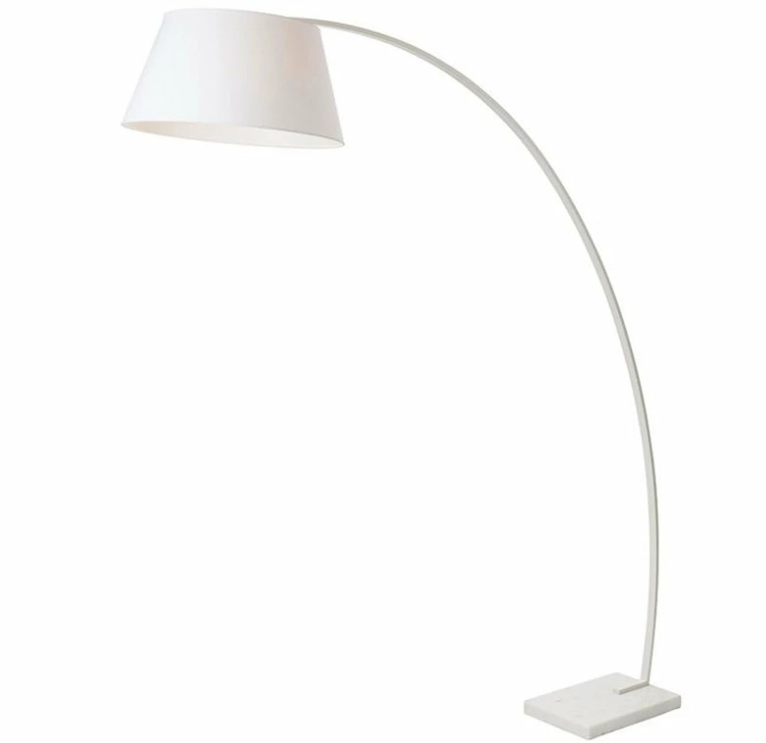 The sweeping arc and tapered shade of the Evan floor lamp is as sculptural as it is practical with broad reach and directed lighting. The Evan features a fabric shade, powder coat steel stem and a marble base, presenting a smart balanced aesthetic.