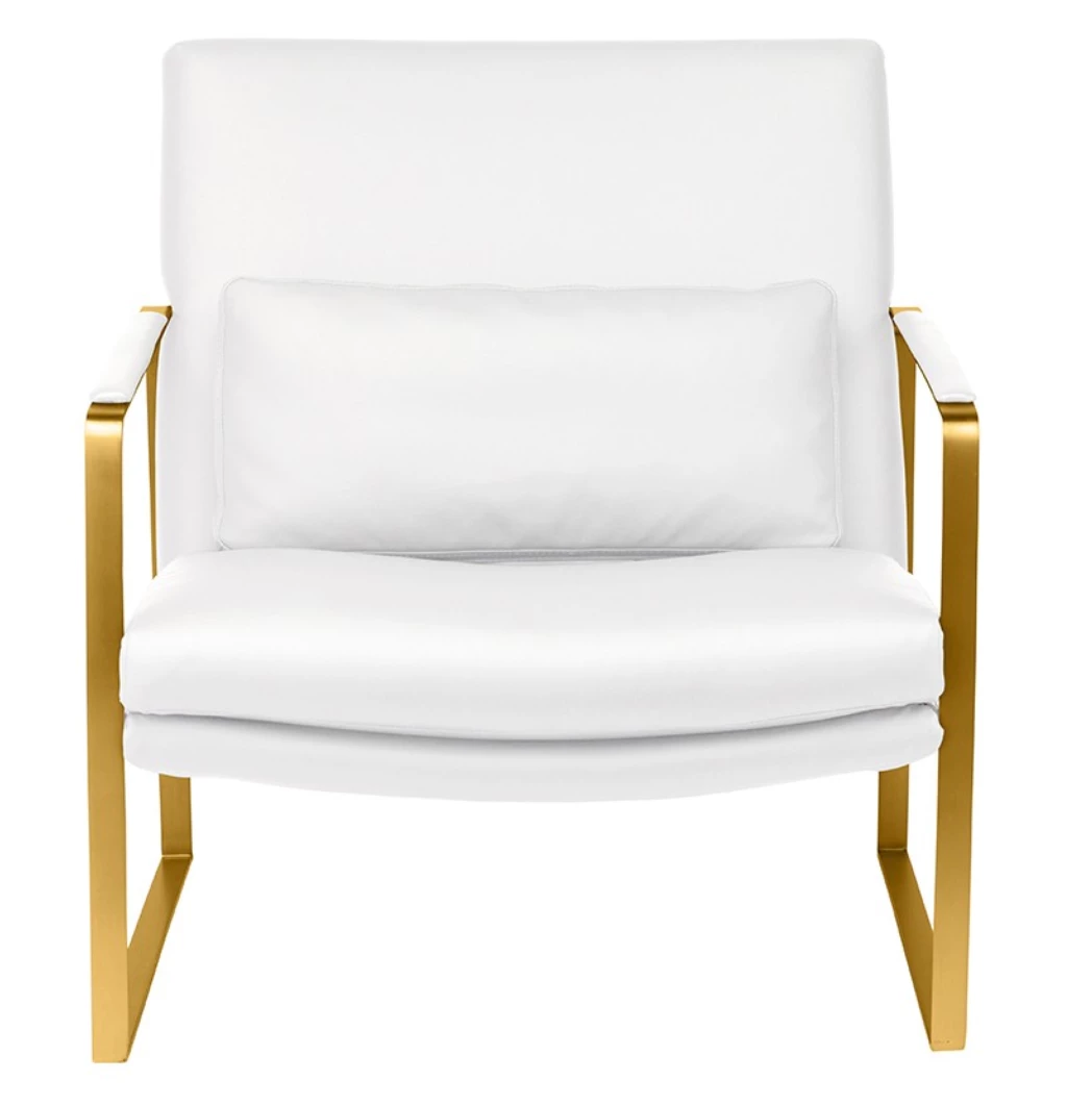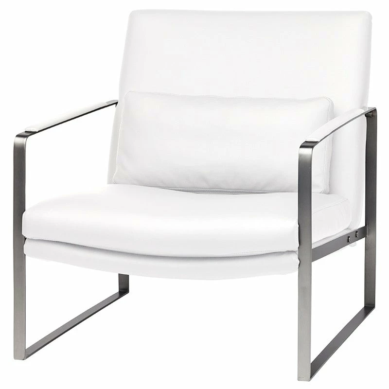 The Leonardo lounge chair combines crisp modern lines with exceptional comfort. A squared stainless steel frame with flattened arms is elegantly simple in form and almost delicate in appearance, the supple fitted upholstery and accompanying pillow complimenting the modern aesthetic of the design.