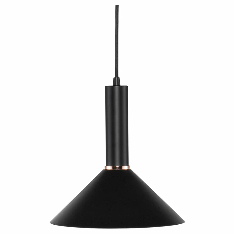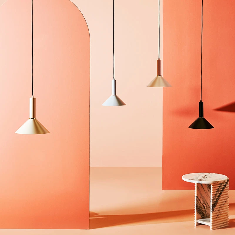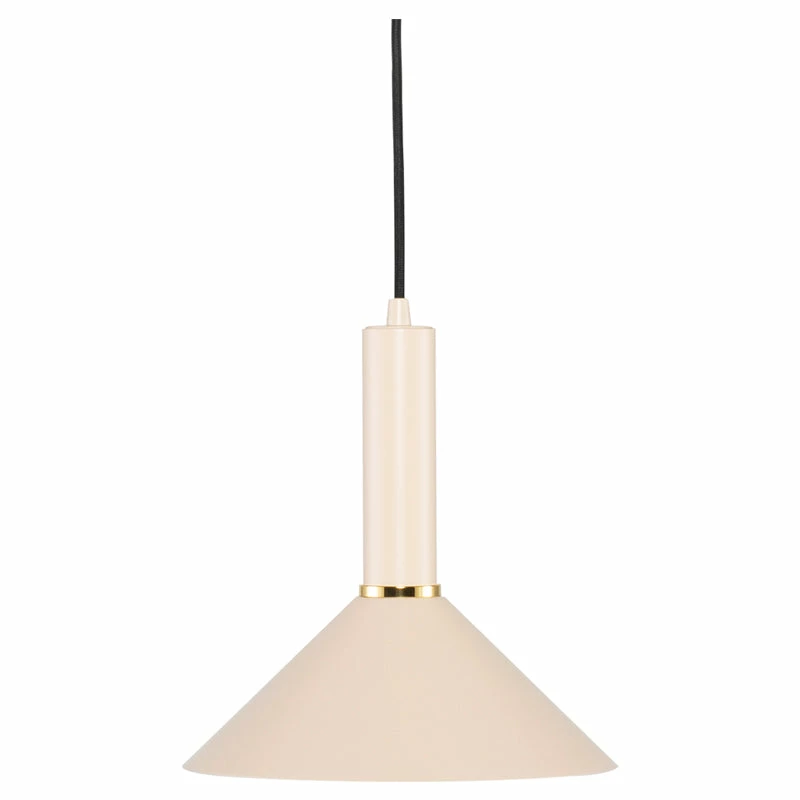 Hanging in a hallway, bedroom or kitchen, the Simona pendant has a classic charm. The lamp shade’s triangular shape directs a soft and diffused light. Understated gold or copper accents complement the pendant’s simple matte finish.