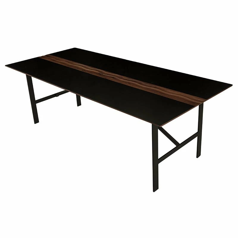 Designed for perfect pairing with 2 to 6 Swell dining chairs, the Swell dining table offers an inverted ratio of solid walnut to blackened metal.
