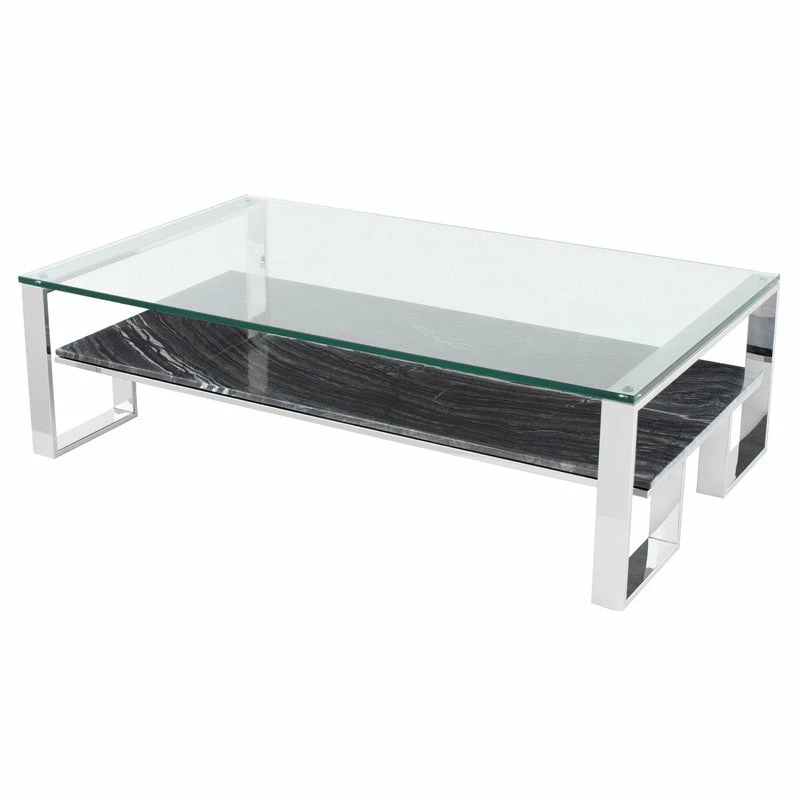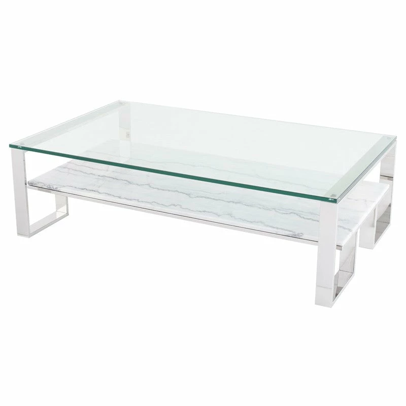 Inspired by early modern deco styling the Tierra coffee table finds inspiration in mixed materials. Brilliant planes of steel and glass highlight the natural textures of stone crafted into dazzling polished marble. The result; minimalism with a refined energy and spirit.