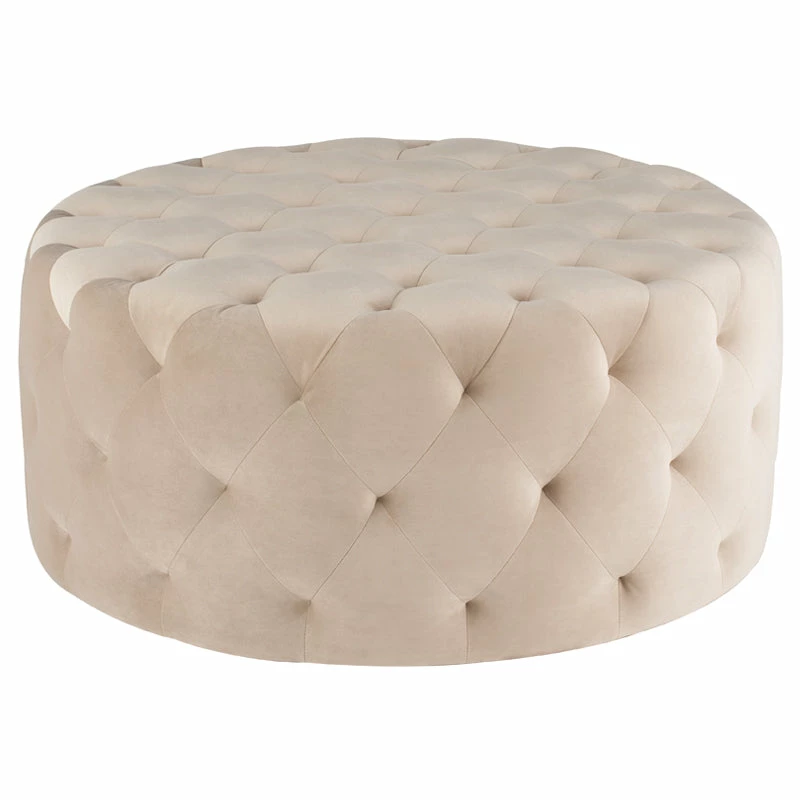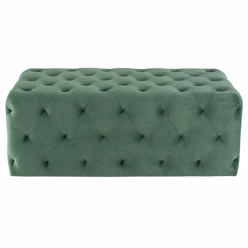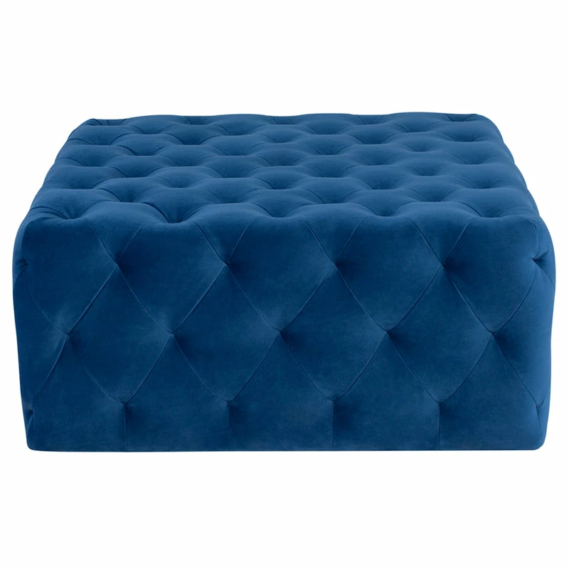 Sophisticated elegance. The Tufty ottoman features rich velour with impeccable tufting throughout, presenting opulent, elegant comfort. Perfect for relaxed seating or as a large coffee table.