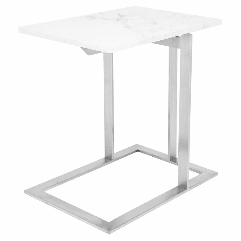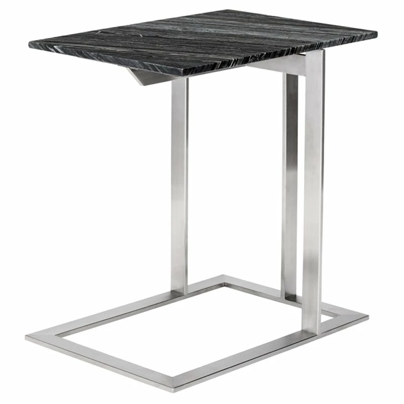 The Dell side table is appropriate for both transitional and contemporary interiors. Extremely versatile, its clean space-saving profile works in a variety of contexts and applications. Features a 3/4-inch-thick marble top (standard and wood-vein options available) over a brushed stainless-steel base.