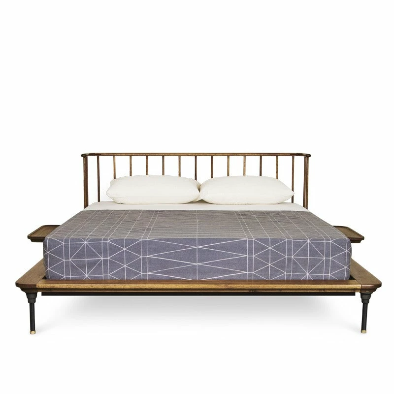 Utility and functionality are hallmarks of the Distrikt King bed. Inspired by Gustav Stickley’s iconic proto-modern designs of the early 20th century accented with an industrial aesthetic, the distinctive Distrikt bed features a dowel headboard and solid wood platform with cast iron legs for contrast and style.