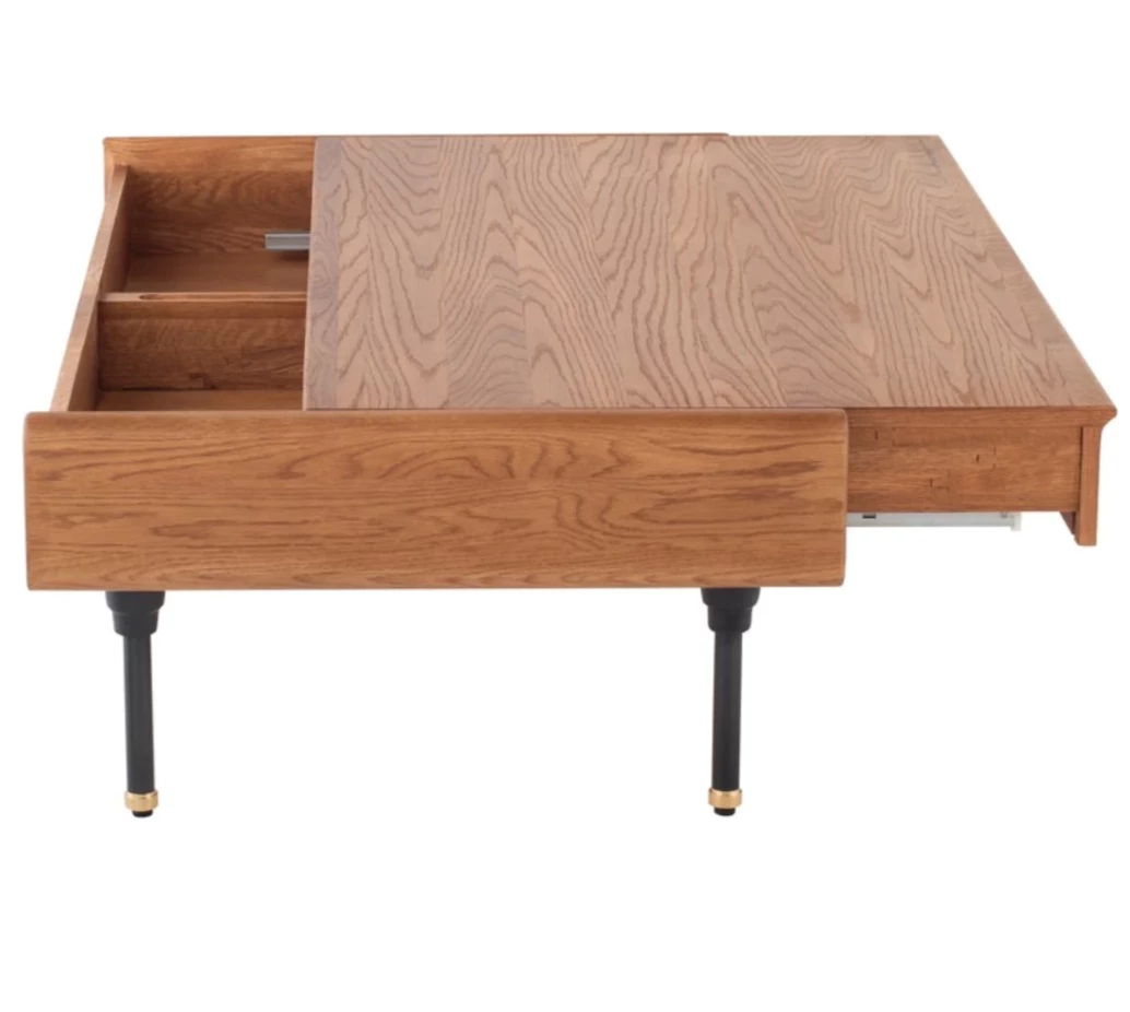 The Distrikt coffee table features clean lines and rounded edges accentuating the unique patterning of the textured wood grain design. Finished with cast iron legs for a look that is contemporary, industrial and artful, the Distrikt has an ingenious drawer for space saving convenience.