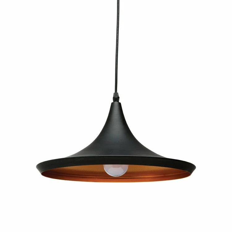 The refined Euclid pendant hangs with graceful reserve. The distinctive wide drop 12 inch small pendant shade with golden interior, casts a light that is diffuse and exceptionally rich.