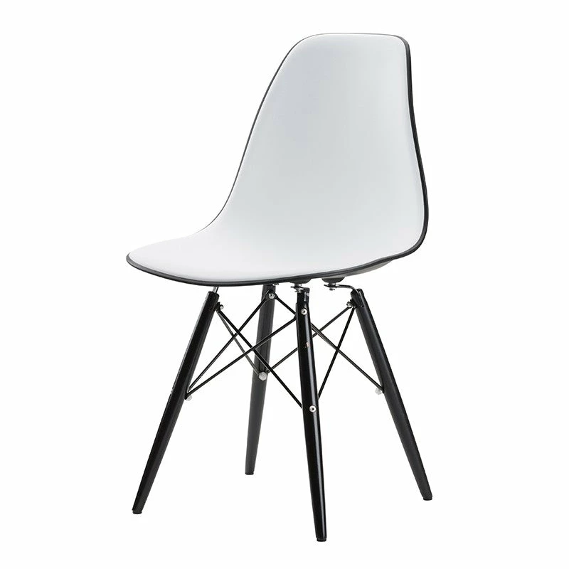 A stunning representation of mid-century modernism, the Felicia dining chair features bolted legs, metal struts, and a polycarbonate shell, resting inside a color-contrasting frame.
