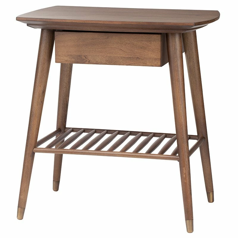 The Ari side table projects an understated charm rooted in mid-century design. Crafted using solid American poplar hard wood finished with brass leg caps the Ari’s simple design expresses warmth and grace. A discrete notebook drawer with glide hinges rounds out this understated classic.
