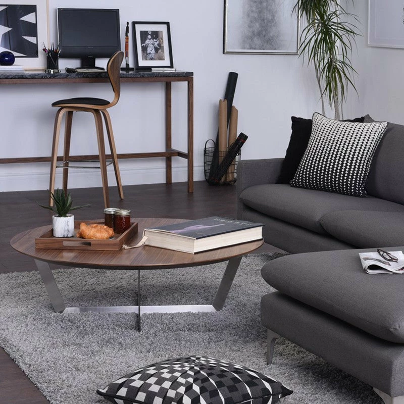 Refined understatement characterizes the Dixon coffee table. The simplicity of the design, in natural American Walnut and brushed stainless steel, is also its charm, expressing a light, contemporary minimalism.