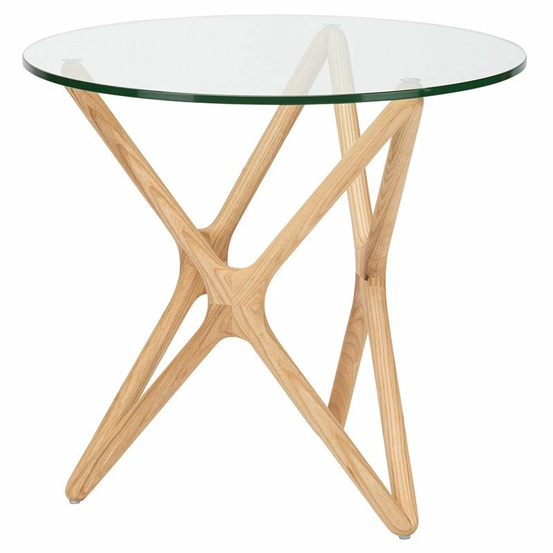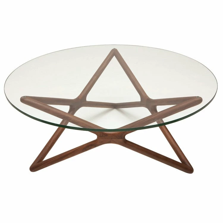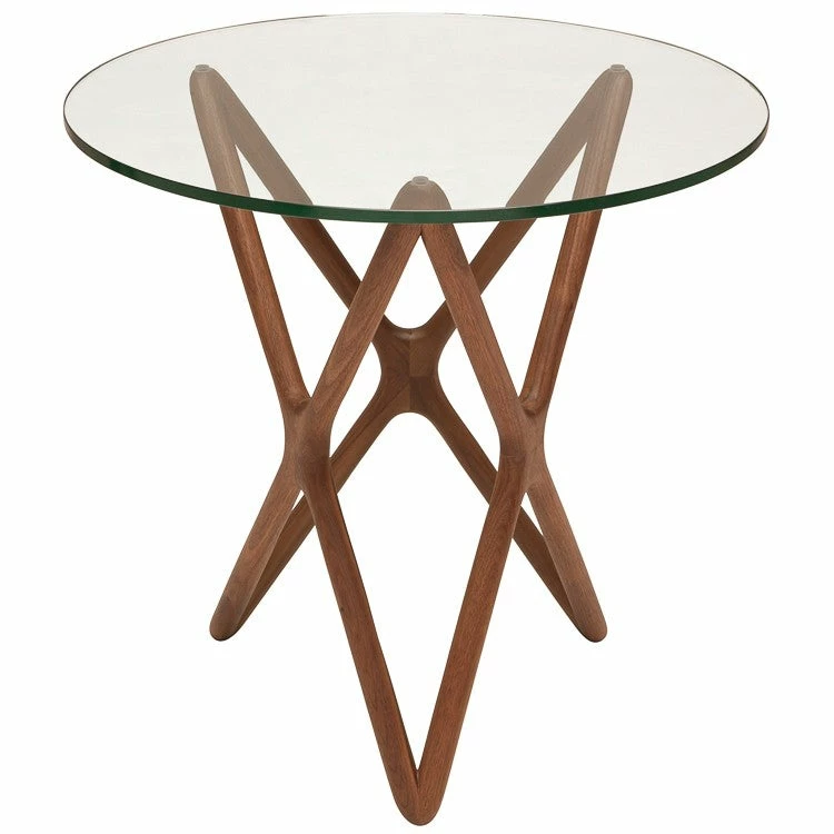 Clever design sets the Star side table apart. Crafted from solid American walnut the ingeniously designed three dimensional Star supports a circular ? inch tempered glass table top with a poised effortless ease.