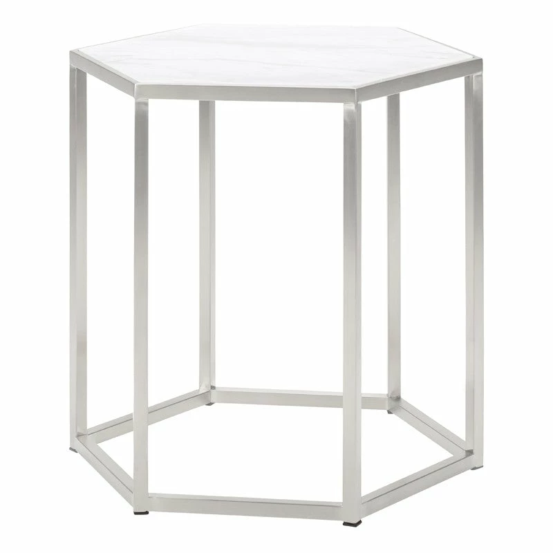 With its stainless-steel base and in-set .8-inch-thick marble top, the Hexion side table manages to look both breezy and substantial an intriguing combination of elements presenting a refined aesthetic.