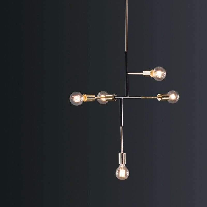 The Hendrix finds expression in asymmetrical vertical and horizontal planes. Brilliant brushed gold and matte black presents balance and contrast, an elegance and symmetry of form.