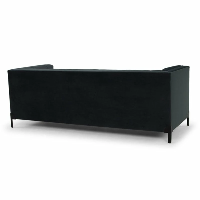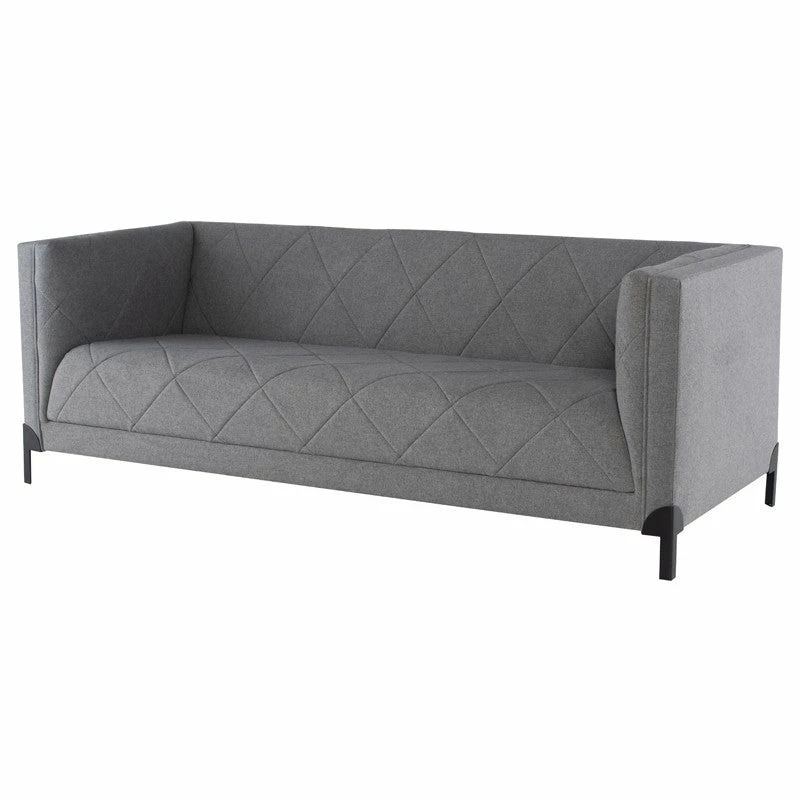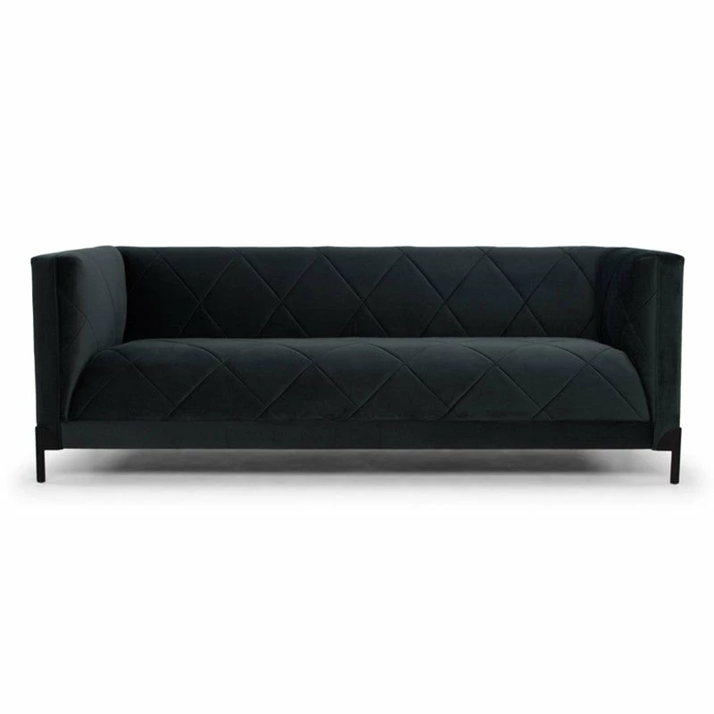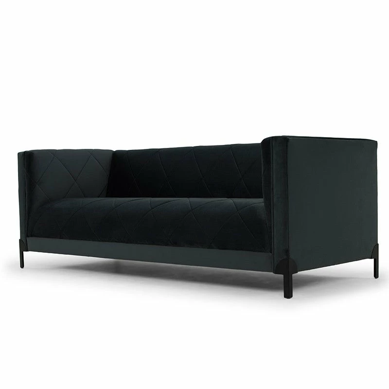 The streamlined Isaak triple seater projects a warm contemporary sophistication with over-sized diamond-shaped quilting across its low, generous form. Matte black stainless-steel legs provide contrast and balance.