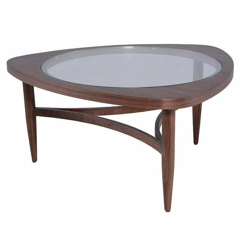 The Isabelle coffee table finds inspiration in the fluid simplicity of mid-century modern design. A study in subtle circles curves and arcs the Isabelle seamlessly juxtaposes a solid walnut frame with a perfectly round inlaid tempered glass top. Crafted in solid walnut the Isabelle coffee table is unique, sculptural and refined.