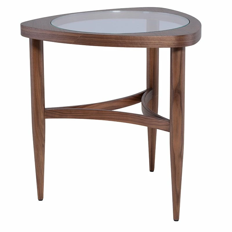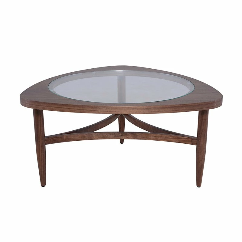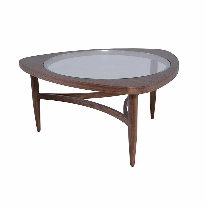 The Isabelle coffee table finds inspiration in the fluid simplicity of mid-century modern design. A study in subtle circles curves and arcs the Isabelle seamlessly juxtaposes a solid walnut frame with a perfectly round inlaid tempered glass top. Crafted in solid walnut the Isabelle coffee table is unique, sculptural and refined.
