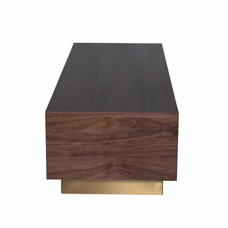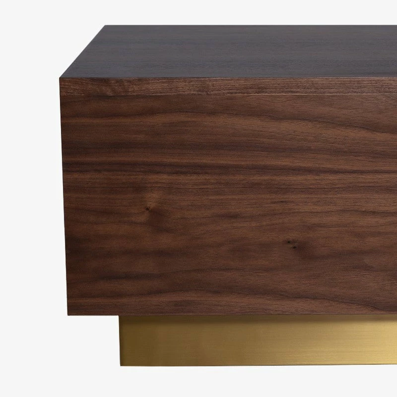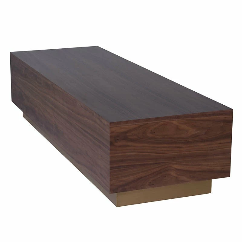 The Jakoby coffee table is notable for its classic modernist iconography. An unadorned oak Veneer rectangle rests on a recessed matte gold stainless steel frame, the base gracefully elevating the minimalist cube table top. Surprisingly simple in its execution the Jakoby presents a natural beauty and serenity of form.