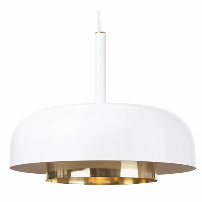 A contemporary original inspired by early 20th century art deco modernism, the Shaya pendant hangs sublimely alone in its field of design. Defined by the unique character of its powder coat steel shade and brass finishing details the Shaya captures the essence of a timeless modernist aesthetic. A color matched canopy and power cable rounds out a deceptively simple elegant design.