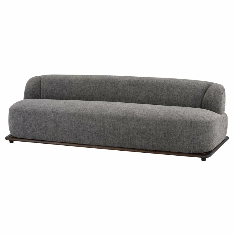 Shaped and rounded the Mesa sofas, offered in single-, double-, and triple-seater options, are set on a solid oak platform and upholstered with stain-resistant textile.