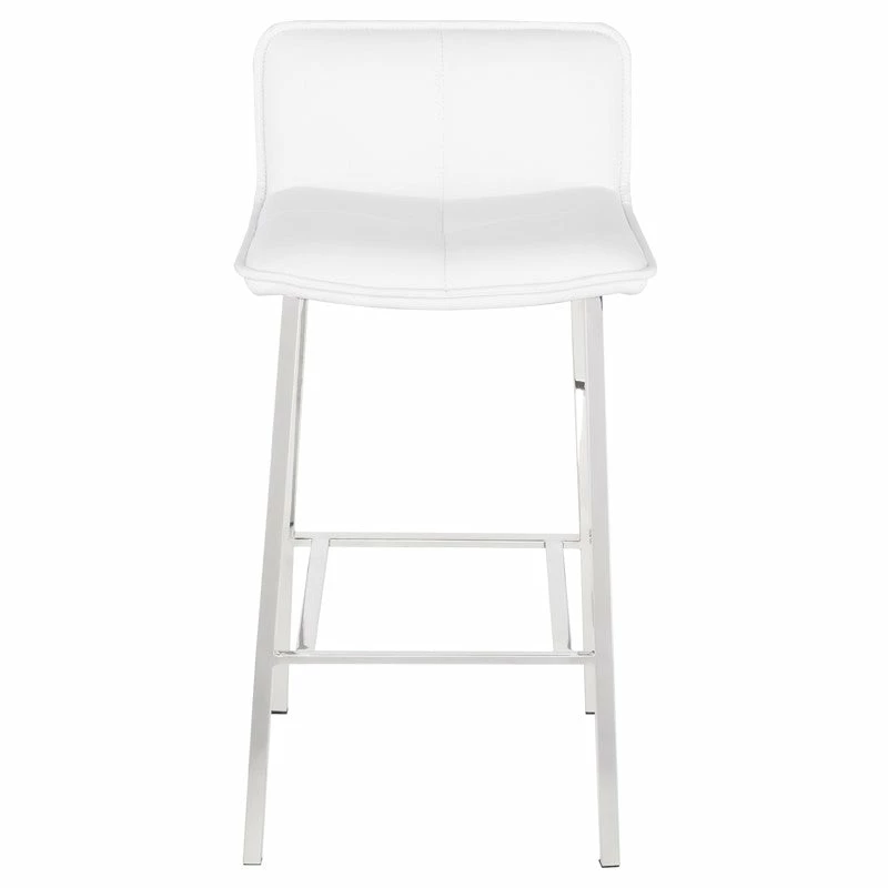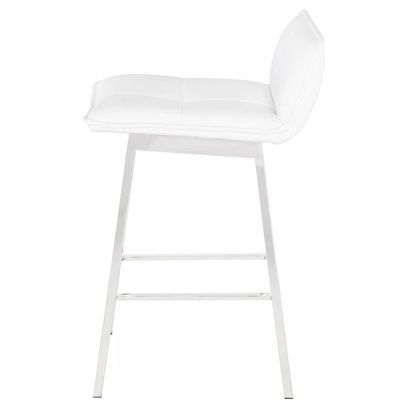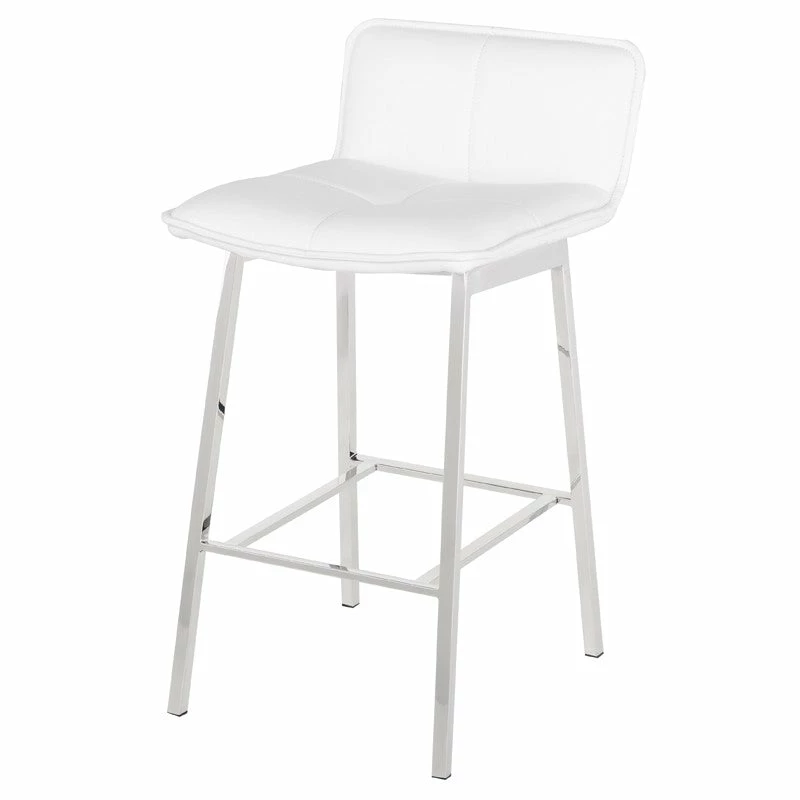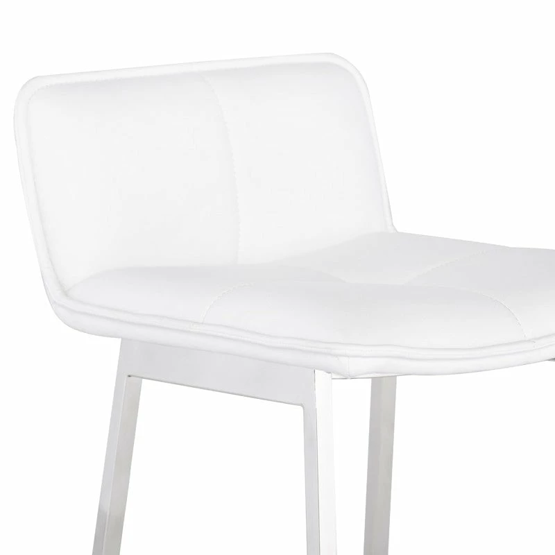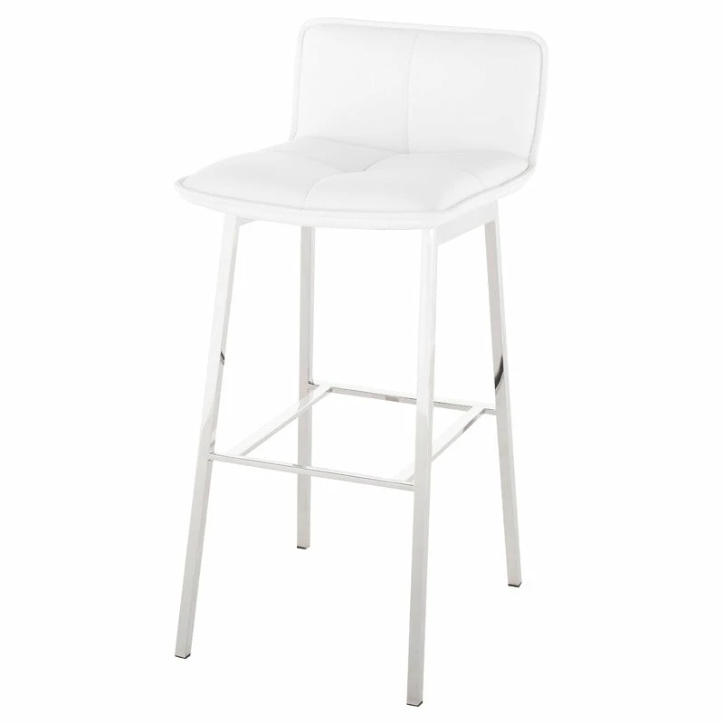 The Sabrina bar stool offers a generously padded seat and back, set atop a highly polished, chrome-finished stainless-steel base and legs.