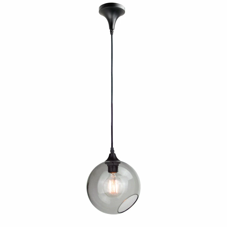 The Sphere pendant, a classic contemporary design featuring an 8 inch circular glass shade and off center cutaway accent. Suitable as a single pendant or suspended as a grouping the Spheres elegant minimalist aesthetic allows for a verity of hanging options.