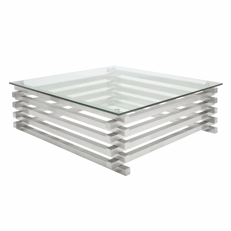 The Stacked coffee table is a brilliant example of distinctive contemporary modernism. True to its name, the innovative stacked design presents a striking interplay of light glass and steel – the result of inspired engineering. The Stacked dining table boasts brushed stainless steel with 5/8 inch tempered glass.
