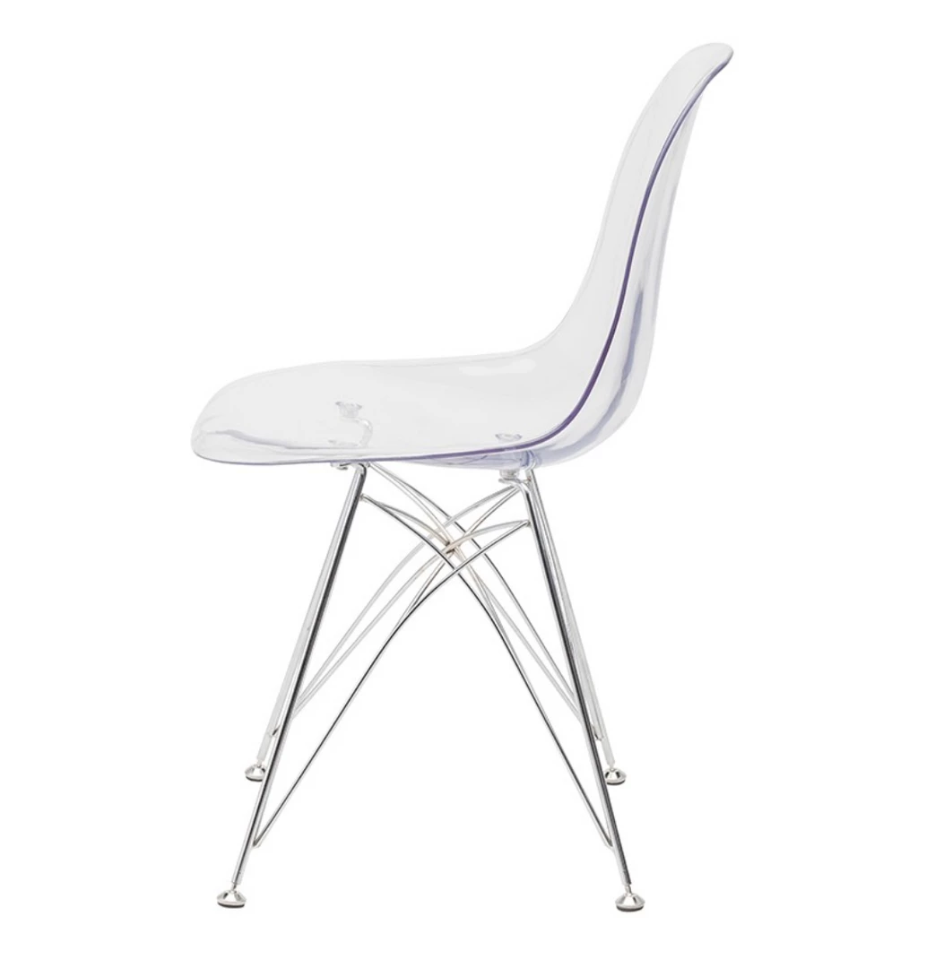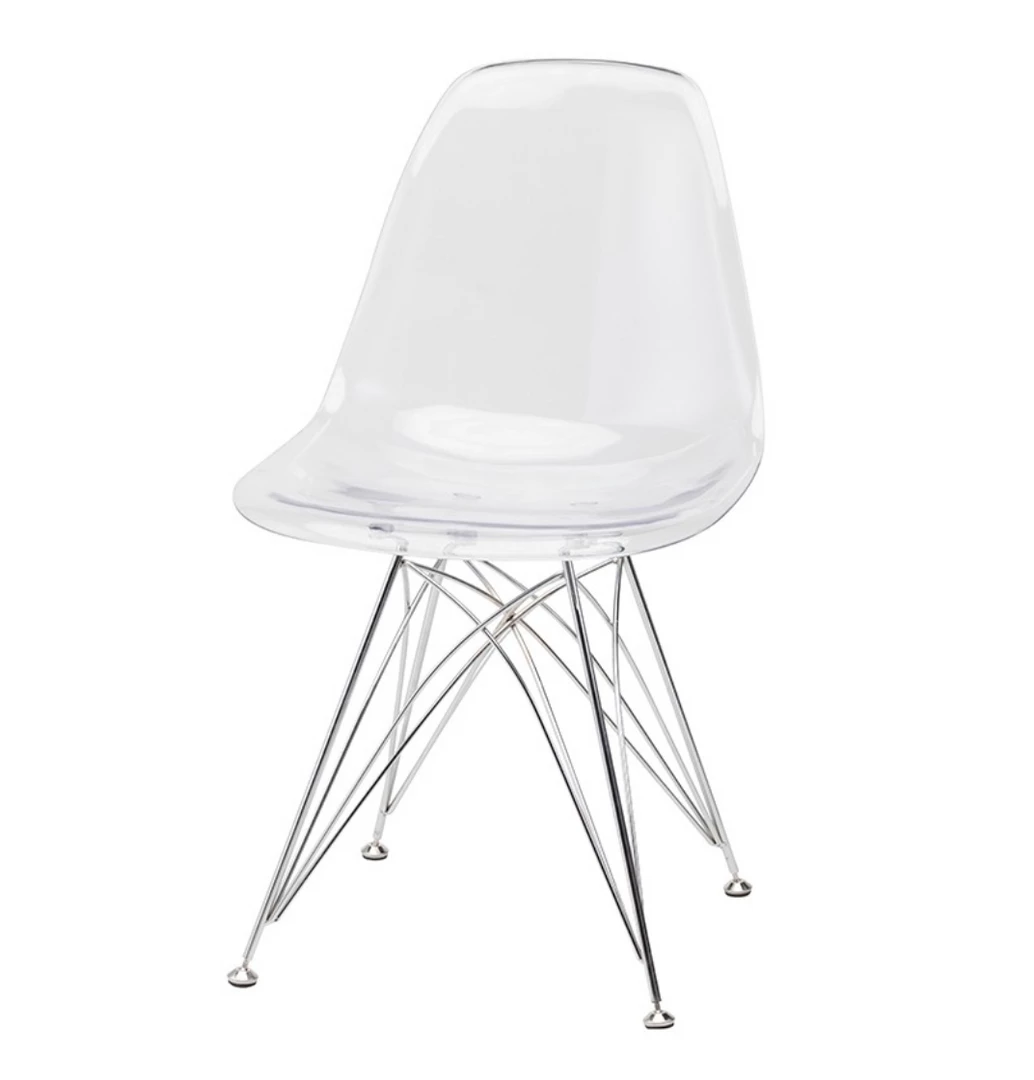 The Stylus dining chair is light and comfortable, paring a striking organic chromed steel frame and circular footrest with an era-defining ABS seat. Inspired by perhaps the most notable seat design to come out of the 60s, the Stylus is molded comfort and modernism at its best. Perfect for cocktails or dining the Stylus dazzles with an eye-catching clear transparency.