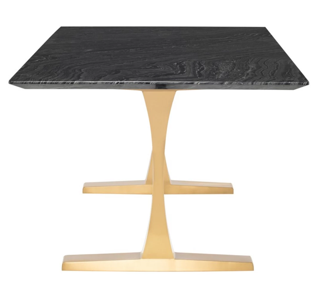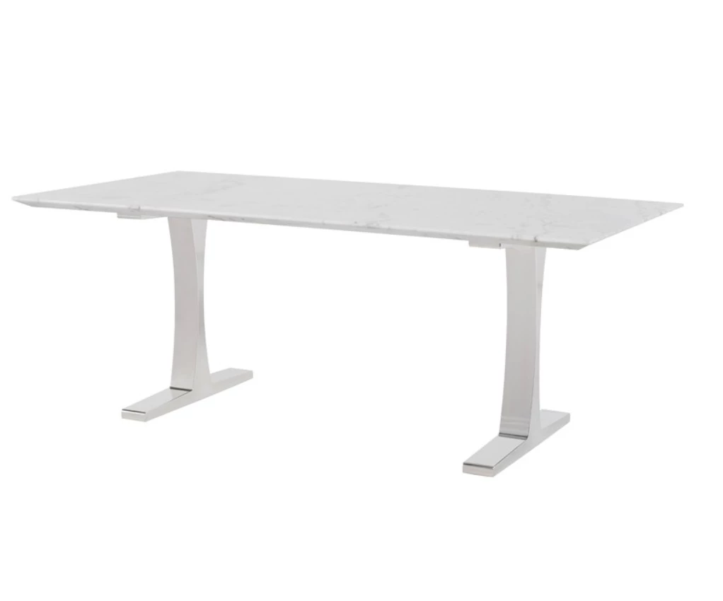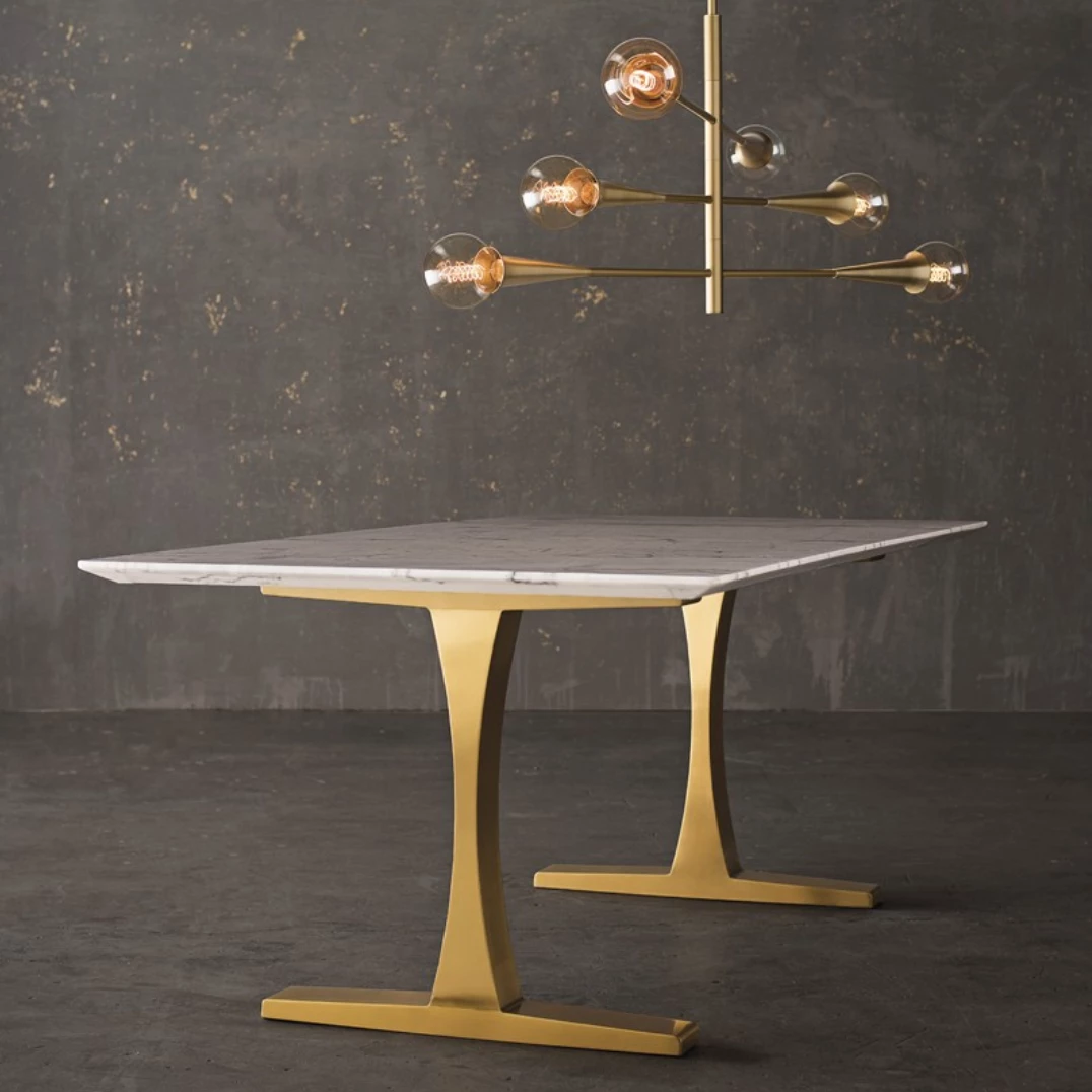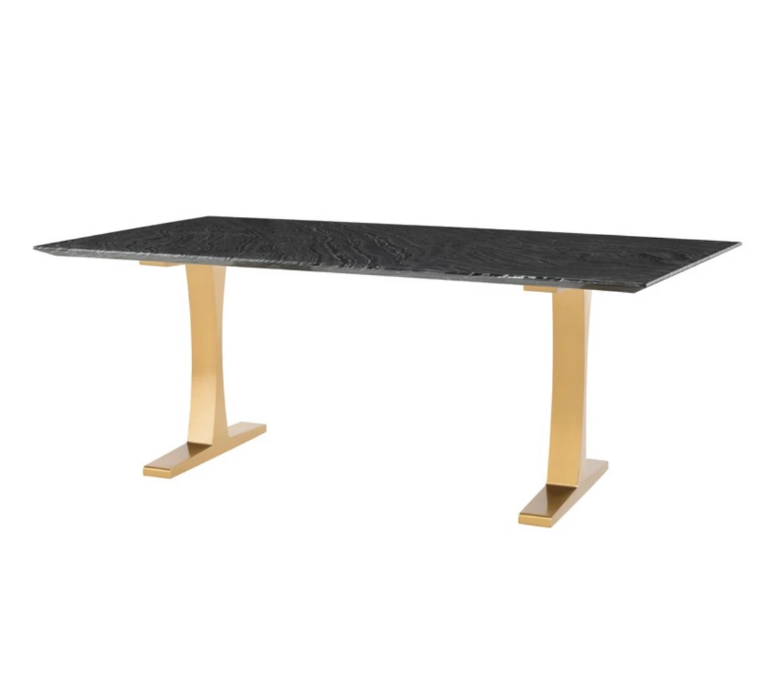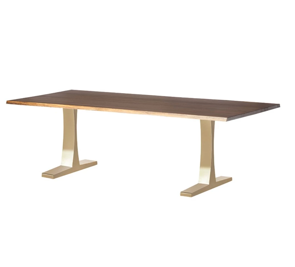 A study in contrasts, the oak and steel Toulouse dining table is both commanding and gracious. Brilliant beam legs in polished stainless steel anchor the Toulouse and support an expansive live edge solid oak tabletop. The Toulouse is available in 1? inch French oak with a live edge finish and double dovetail joinery.