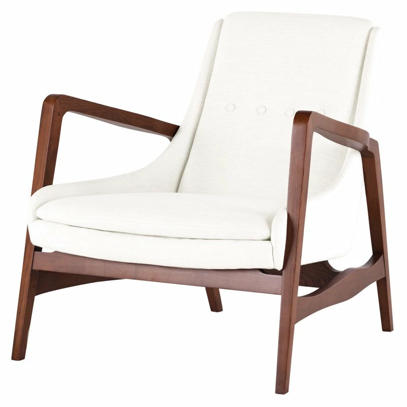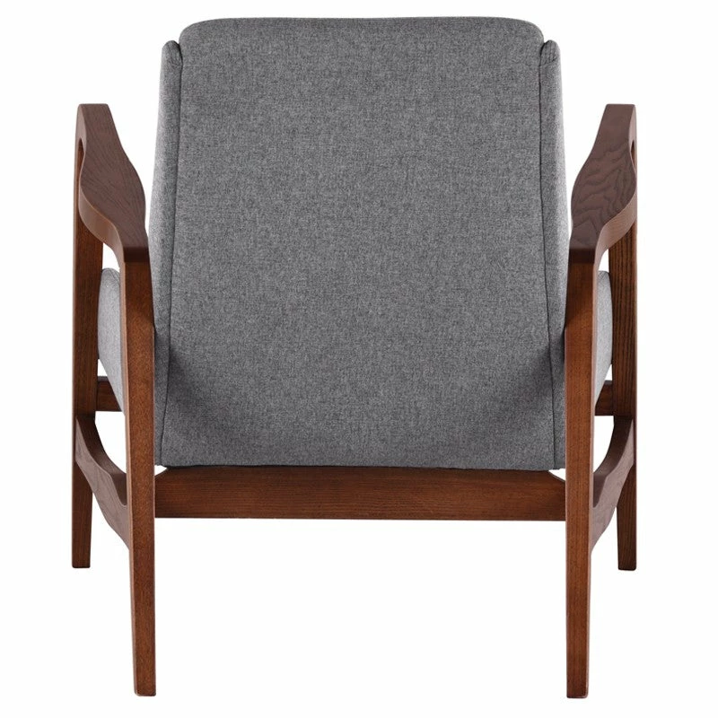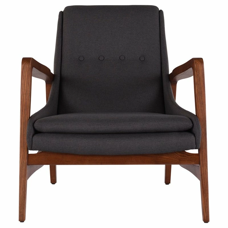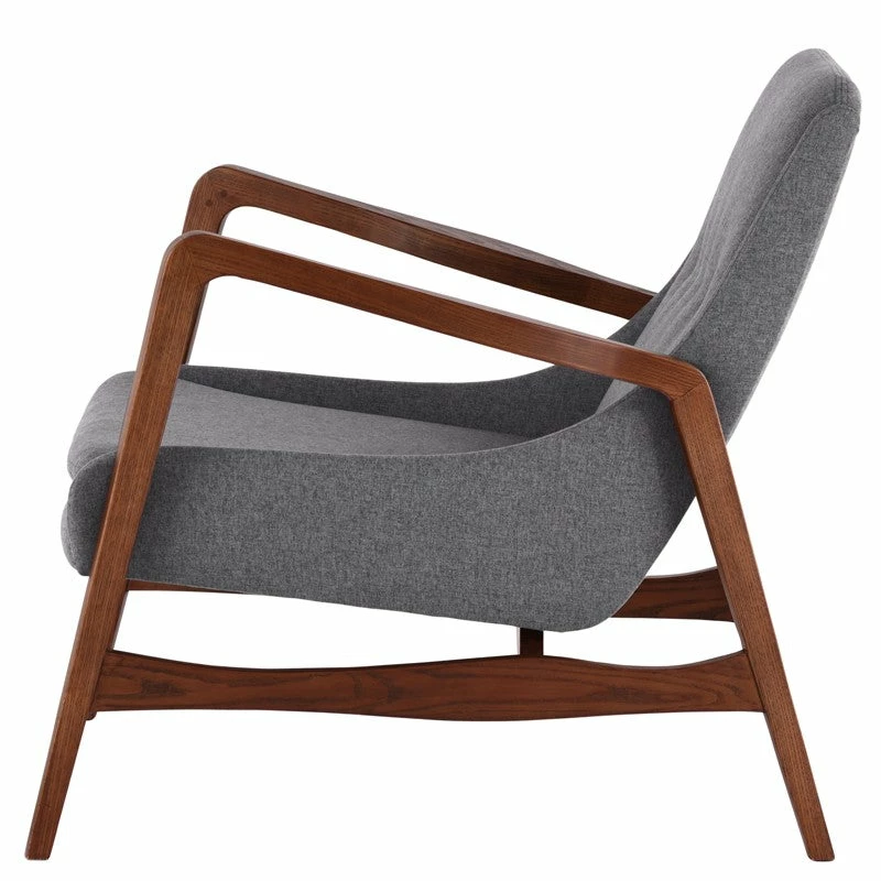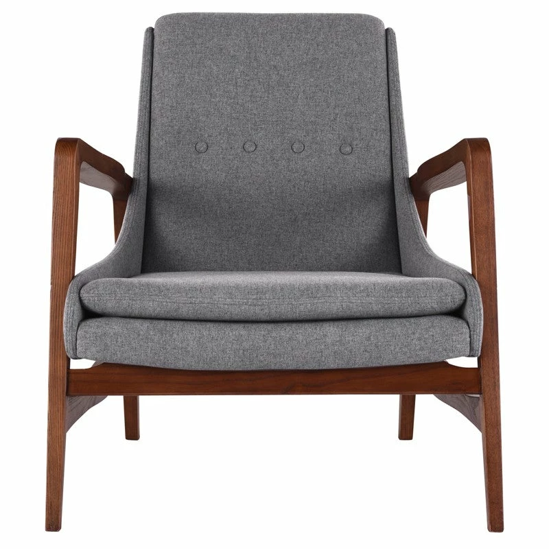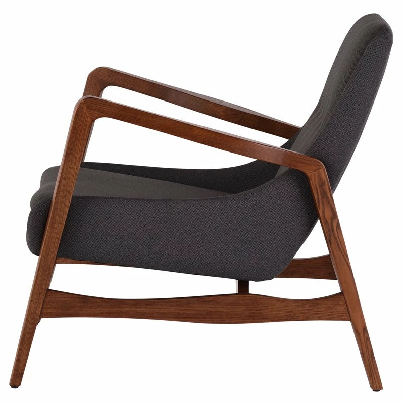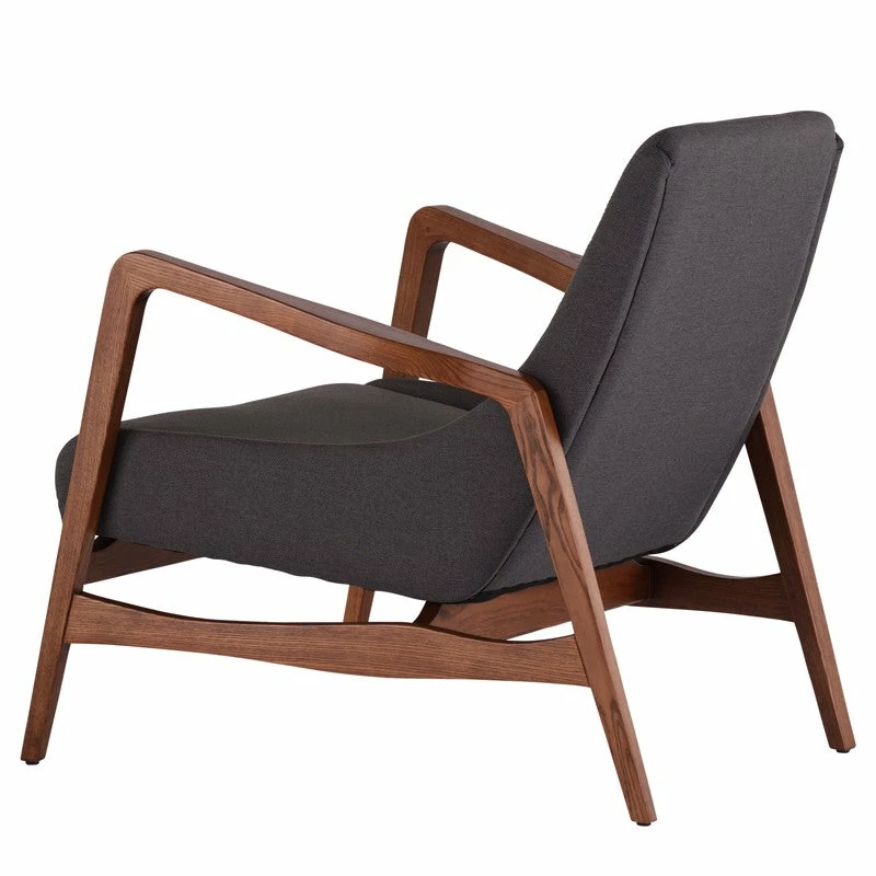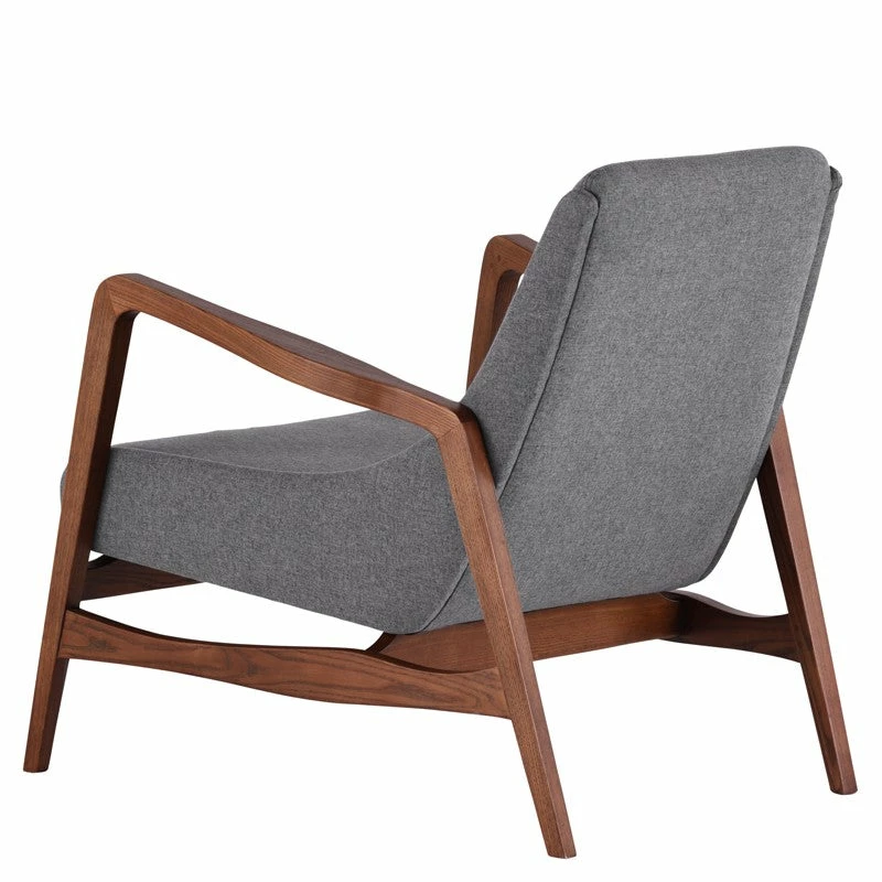 The Enzo occasional chair highlights an elegant, organic, simplicity of design. Inspired by mid-century modernism, the exposed, finely-sculptured Walnut frame embraces a deep seat, covered in neutral grey fabrics presenting a light, graceful aesthetic.
