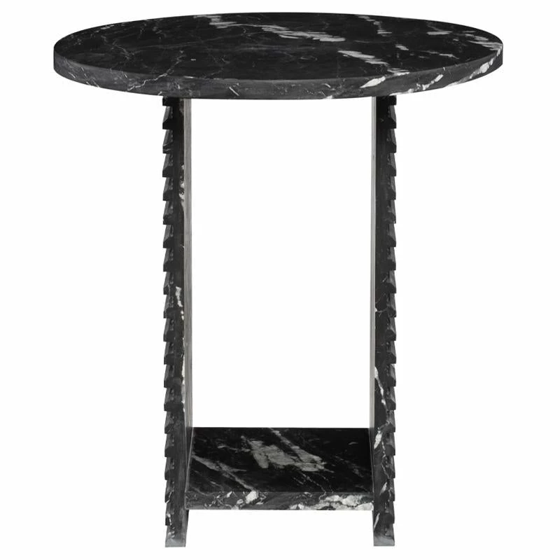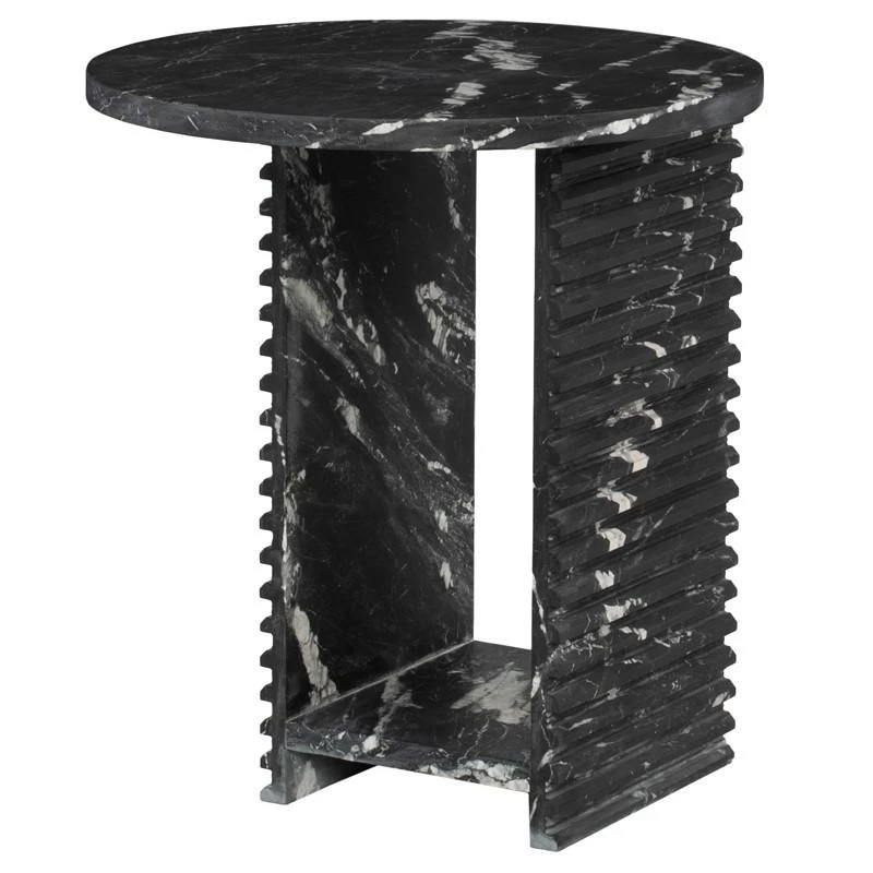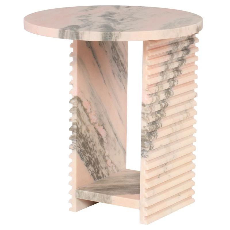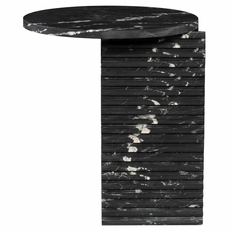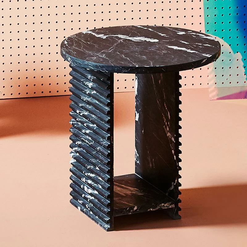 Playing with geometric shapes, graphic cut-outs, and a strong marble finish, the Mya is a confident side table with a maximalist mentality. Each table is expertly crafted out of a unique piece of natural stone, creating beautiful variations and one-of-a-kind details.
