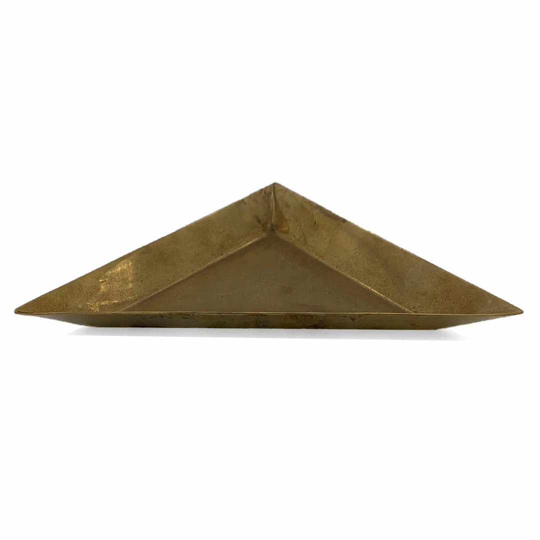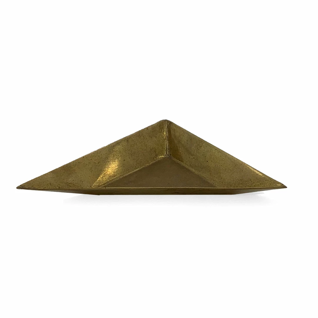 Small trays formed from brass into clean-lined triangle shapes are stylish catchalls for nuts, olives, or small desk items.
