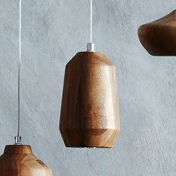 A series of pendant lights carved from beautiful walnut in sinuous shapes make a statement as a grouping. The pendants have clear 8′ cords, matching wood canopies and are packed with high-intensity 1.5 watts LED bulbs. Hardwire installation required. The LED bulbs are designed to last up to 30,000 hours; replacement bulbs are available.