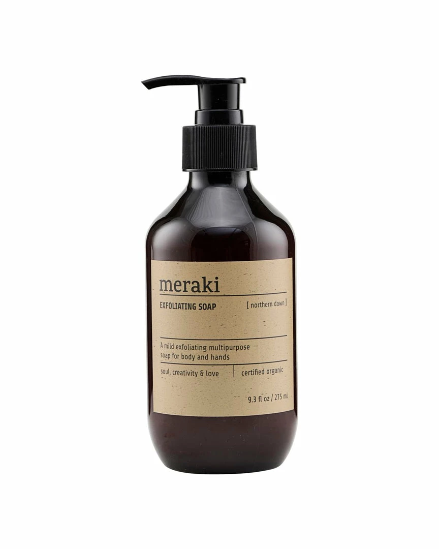 Exfoliating Soap is a very light and certified organic soap with a gentle scrubbing effect that leaves the skin soft, smooth and not least aromatic. If you are not into oil scrubs that are heavy and full, this multipurpose scrub from Meraki is a wonderful alternative with its scent of Northern Dawn. It can be used for daily hand washing and in the shower. The fine apricot granule and the gently scrubbing rice grains remove dead skin cells and gently cleanse the skin. The soap is suitable for all skin types.