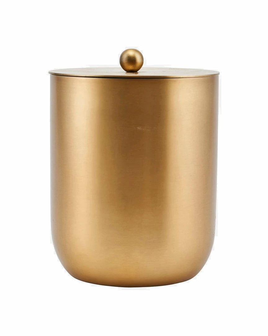 Welcome your guests with a glass of cold white wine. With this beautiful wine cooler from House Doctor that is called Alir, you can keep your wine cool longer, while also using it as a decorative item on the table. The wine cooler is made of stainless steel and brass, which makes it a beautiful addition to the Nordic-inspired home. Alir can also be used to keep ice cubes cold as a lid is included. The ice/wine cooler measures 12 cm in diameter and has a height of 15 cm.