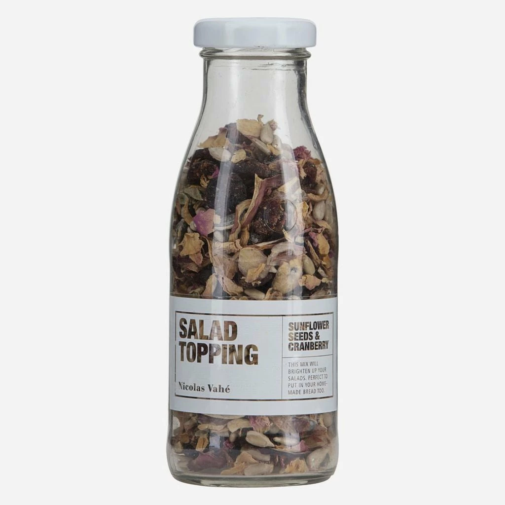 Do you want to add a crunchy element to your salads? Nicolas Vahé has created three different kinds of salad toppings, where this one comes with a crunchy element in the shape of sunflower seeds, combined with a balanced and sour taste of sundried cranberries. In addition to topping your salads, you can also use this mix for home baking, and the delicious cranberries will add a fun, colourful touch to your baked goods. You can also use this mix as topping for your breakfast, it will start your day off in the best possible way. We recommend that you store this item in a cool, dark and dry environment.