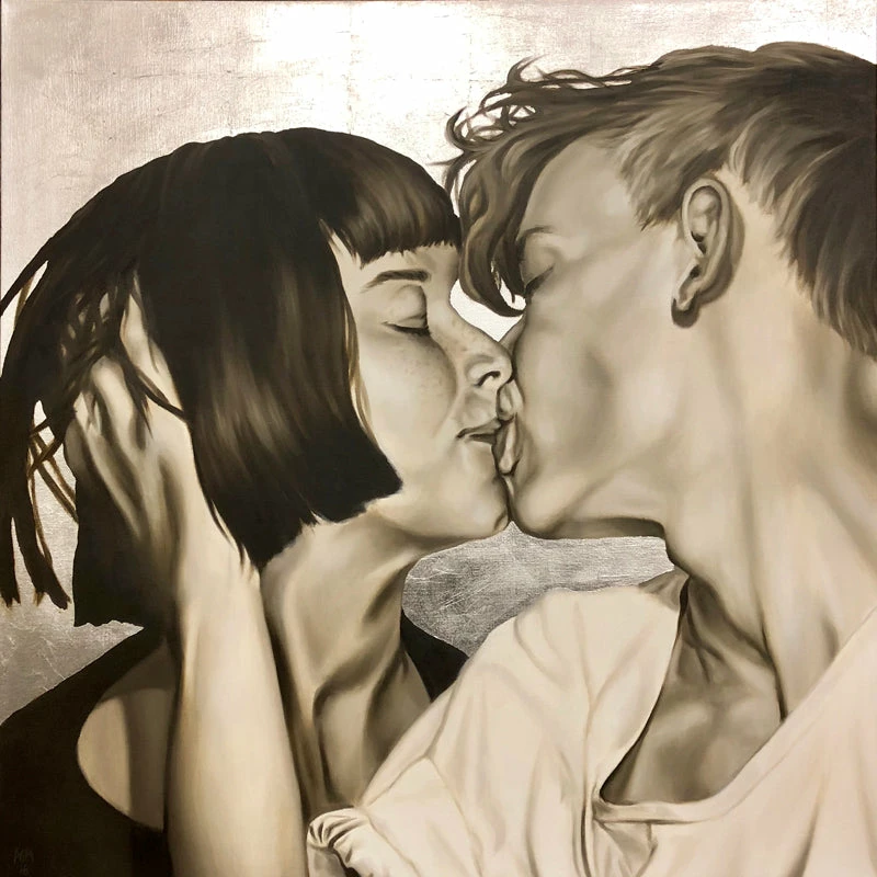 This is a series of paintings based on found vintage photo booth images. The photo booth allowed people to be whoever and whatever they wanted to be – their authentic selves or a fantasy of what they could be. Kids could be “naughty,” lovers could celebrate unsanctioned love and grownups could be as childish as they wanted. Each image tells a specific but completely anonymous story!