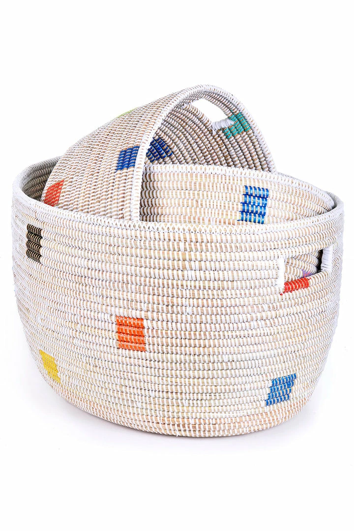 Handwoven by skilled Wolof women in Senegal, West Africa, this lovely set of three baskets incorporates modern African style into your decor without sacrificing function.