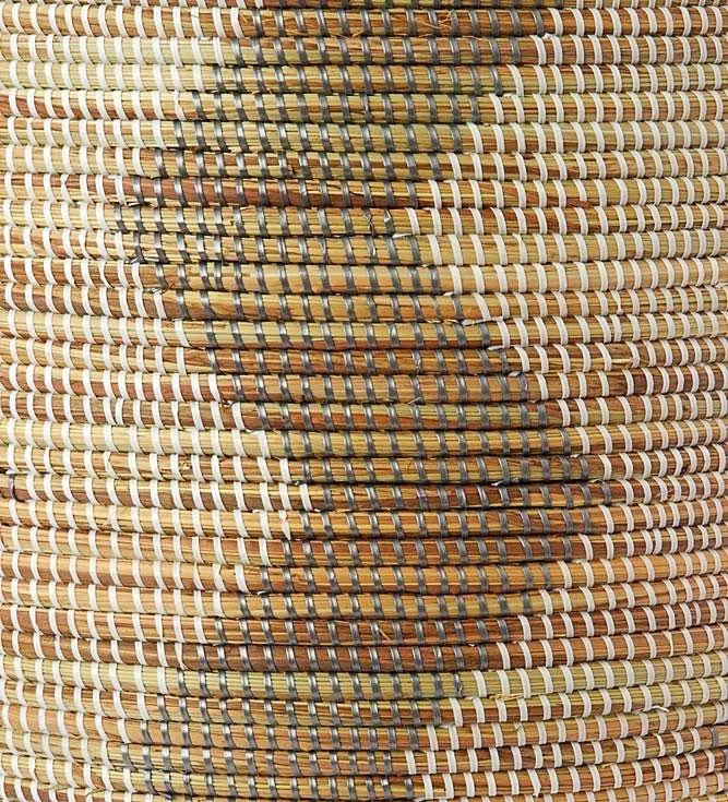 Each basket is woven in the coil style by binding dried cattail stalks with plastic strips salvaged from a Dakar mat factory. The combination of natural and synthetic materials beautifully displays modern African artistry.