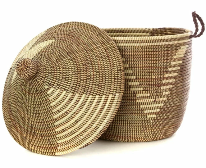 A network of rural Wolof women in nine Senegalese villages are working together to create beautiful handcrafted baskets for export. Using locally harvested cattail stalks and strips of plastic used to make prayer mats, the women bring supplemental income to their households by weaving baskets between their daily duties.