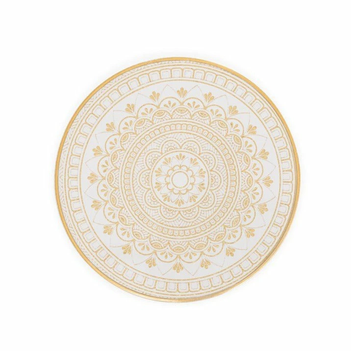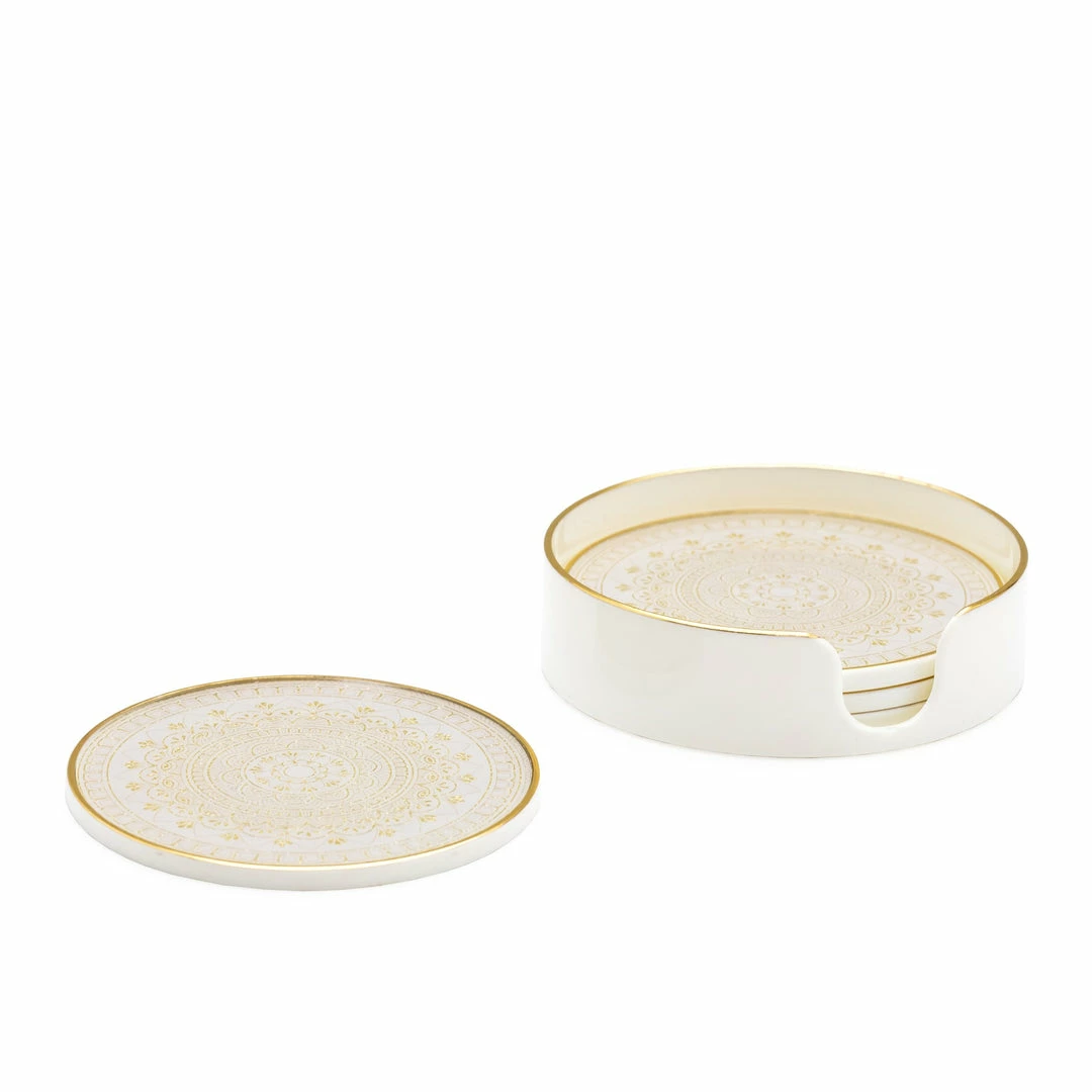 The gorgeous Art Deco inspired pattern of these glass top coasters make them truly stand out. The plastic trim and glass top makes them easy to care. Includes the storage box.
