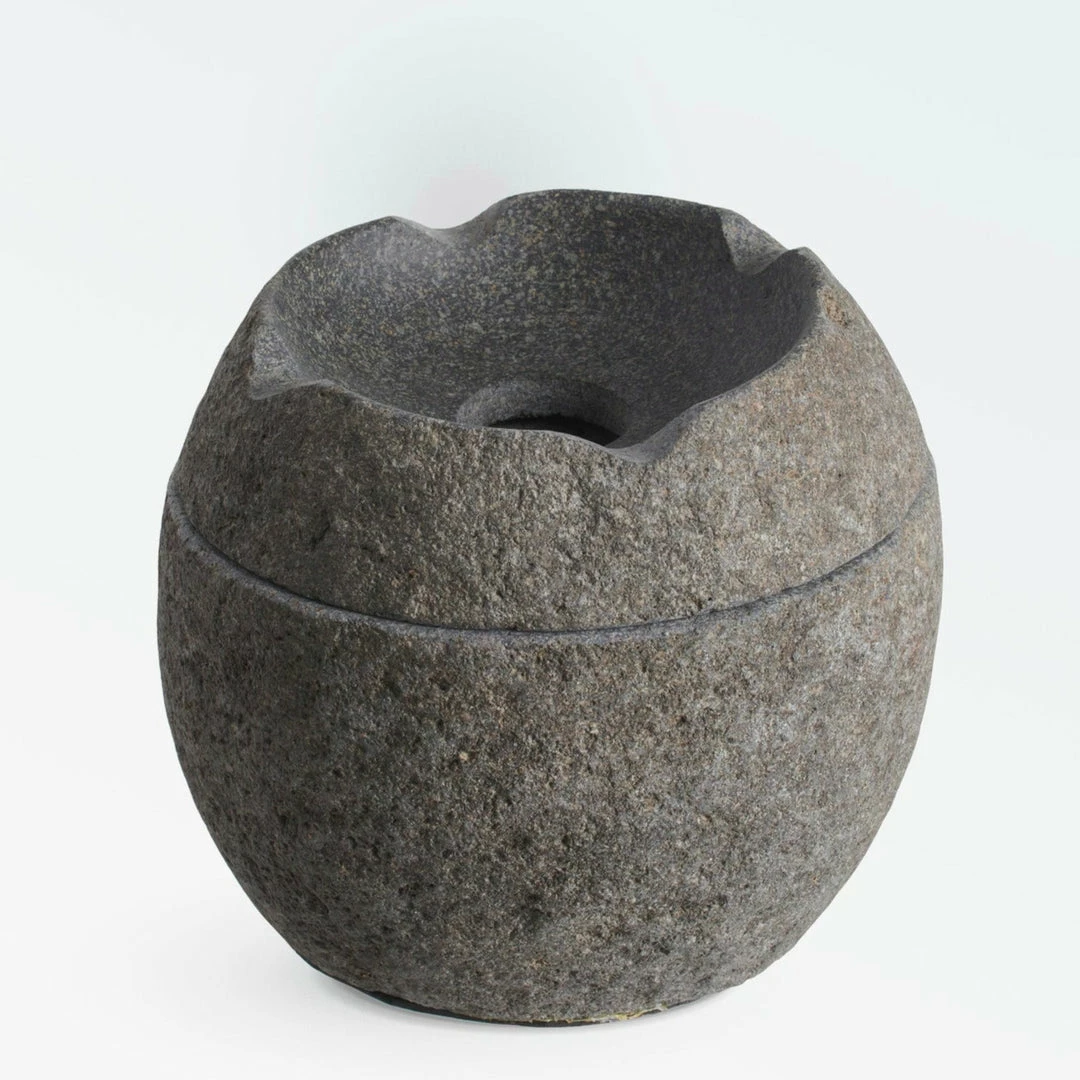 Carved from a single volcanic stone, the top lifts for easy clean. Take it outside with you–this one won’t blow away. So good, we hope you won’t waste it on tobacco.
